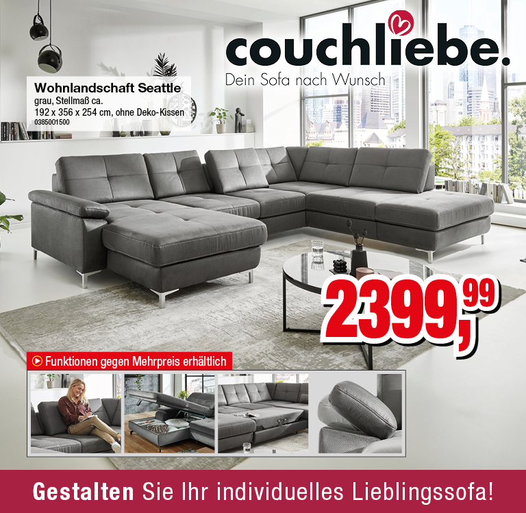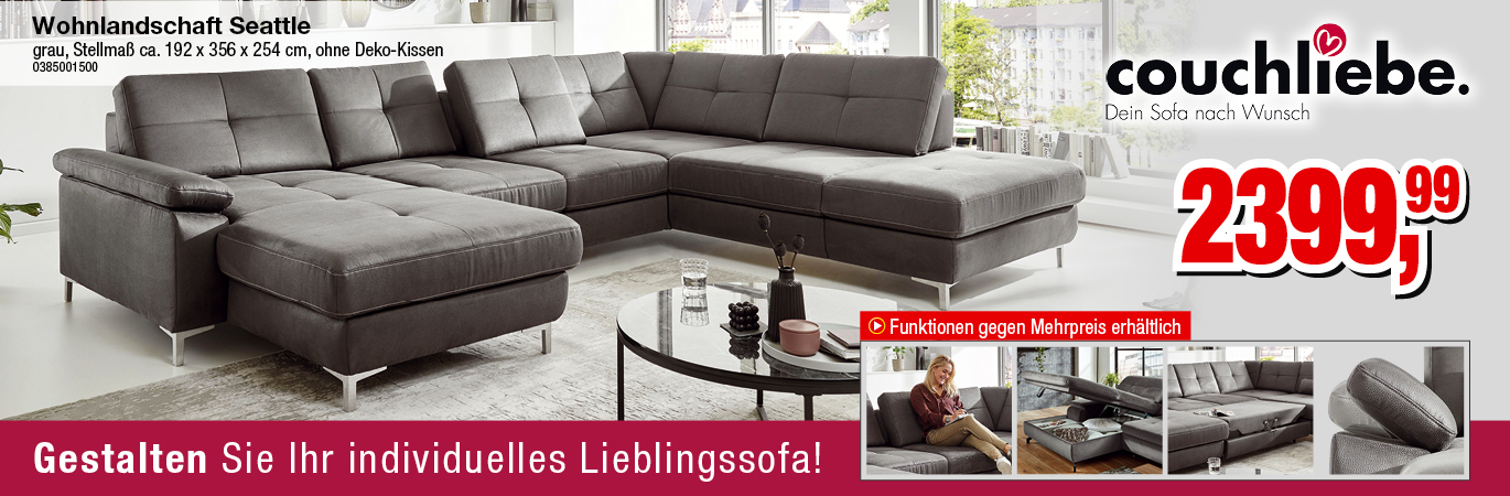 - Sofas & Couches in unterschiedlichen Größen und Formen wie Wohnlandschaften, Ecksofas, Schlafsofas, Big Sofas und Einzelsofas