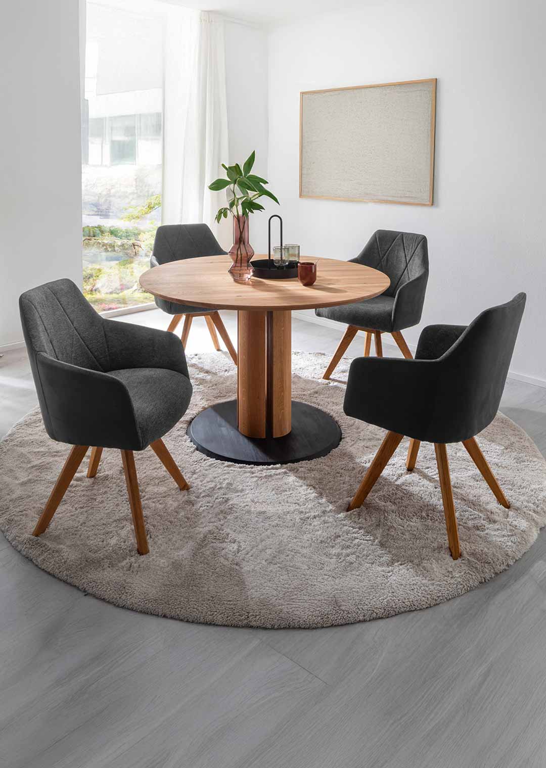 Armlehnstuhl anthrazit Esszimmerstuhl Wildeiche - REDDING