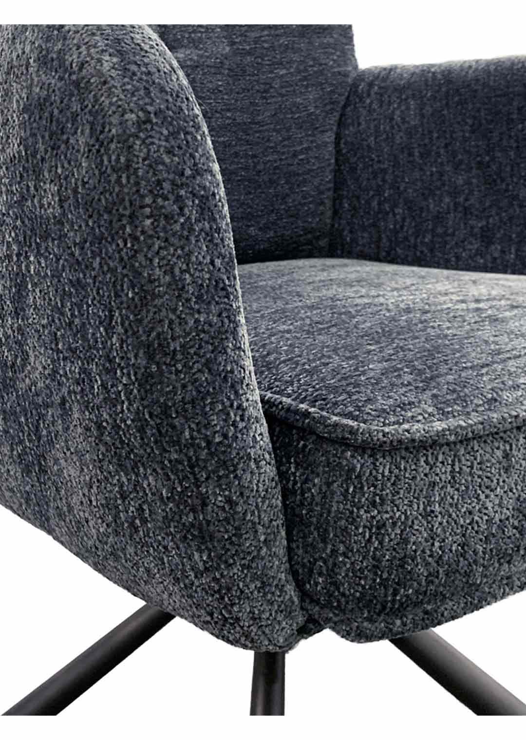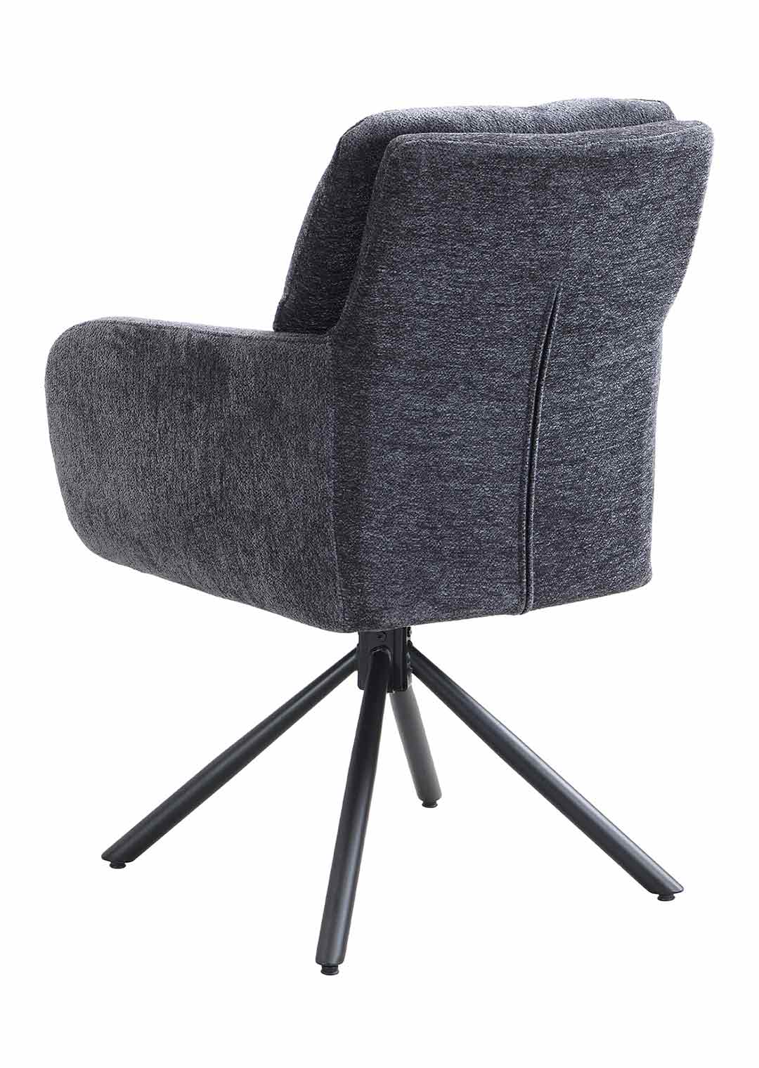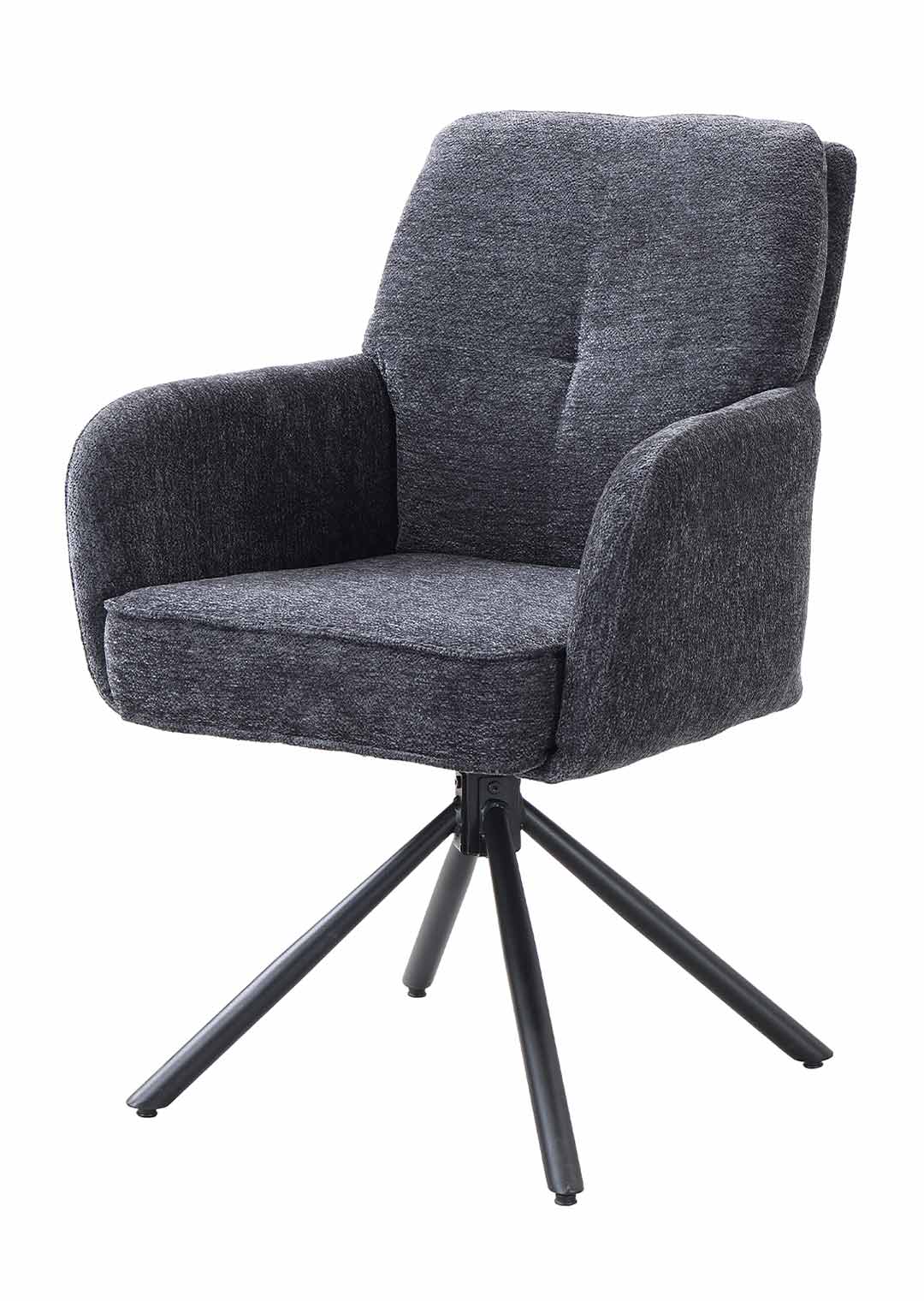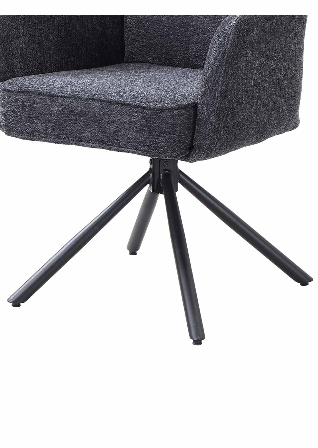 Mit unserem stilvollen Armlehnstuhl JÖRDIS bereichern Sie Ihr Zuhause und setzen gemütliche Statements an Ihrem Esstisch. In topaktuellem Bouclé-Stoff bezogen begeistert die Oberfläche mit ihrer texturierten und anschmiegsamen Haptik. Bouclé-Stoff überzeugt dank seiner einzigartigen Gestaltung, die durch ihre kunstvoll gewebten Schlingen elegante und trendige Raffinesse verströmt. Ideal für den skandinavischen Touch in Ihrem Zuhause. Der edle Look in Anthrazit wird abgerundet mit Kedernähten und einer punktuellen Ziernaht am Rücken. Komplementierend zur anschmiegsamen Stoffgestaltung trägt das Metallgestell in Schwarz zu einer formschönen Linienführung bei und fördert zusätzlich die Stabilität.