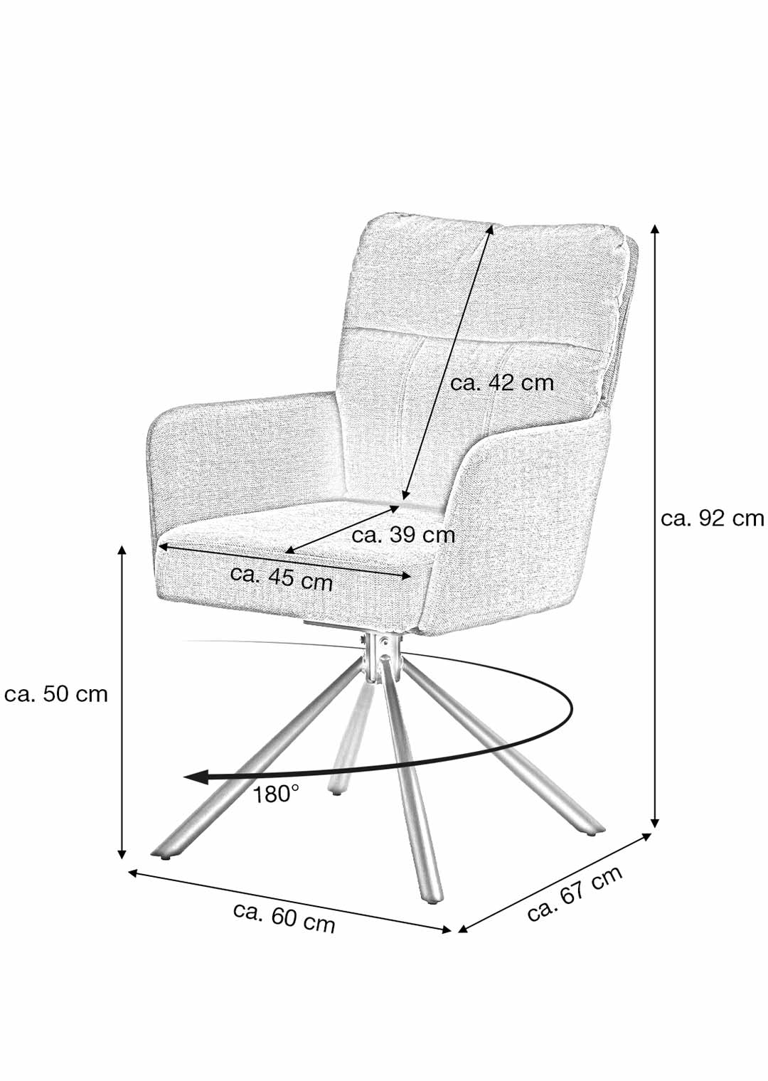 Aber auch durch seinen außergewöhnlichen Sitzkomfort überzeugt der Armlehnstuhl UTICA auf ganzer Linie. Der Komfortsitz mit Taschenfederkern-Polsterung sorgt für ein angenehmes Sitzgefühl. So wird auch längeres Sitzen auf diesem Stuhl zum Genuss. Die ergonomisch gestalteten, hohen Armlehnen laden dazu ein, die Arme entspannt abzulegen und fördern eine gesunde Sitzhaltung. Der Drehstuhl ist außerdem um 180 Grad drehbar, sodass freies bewegen am Esstisch jederzeit problemlos möglich ist. Gleichzeitig kehrt er dank der praktischen Nivellierung stets automatisch in seine Ausgangsposition zurück. So erfüllt der Armlehnstuhl UTICA alle Ansprüche an Design, Komfort und Flexibilität.