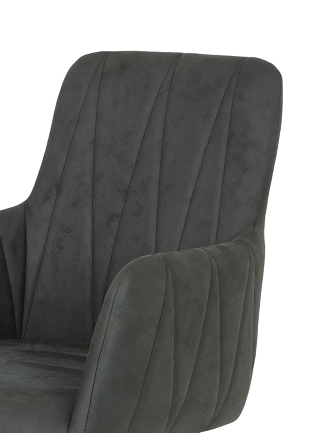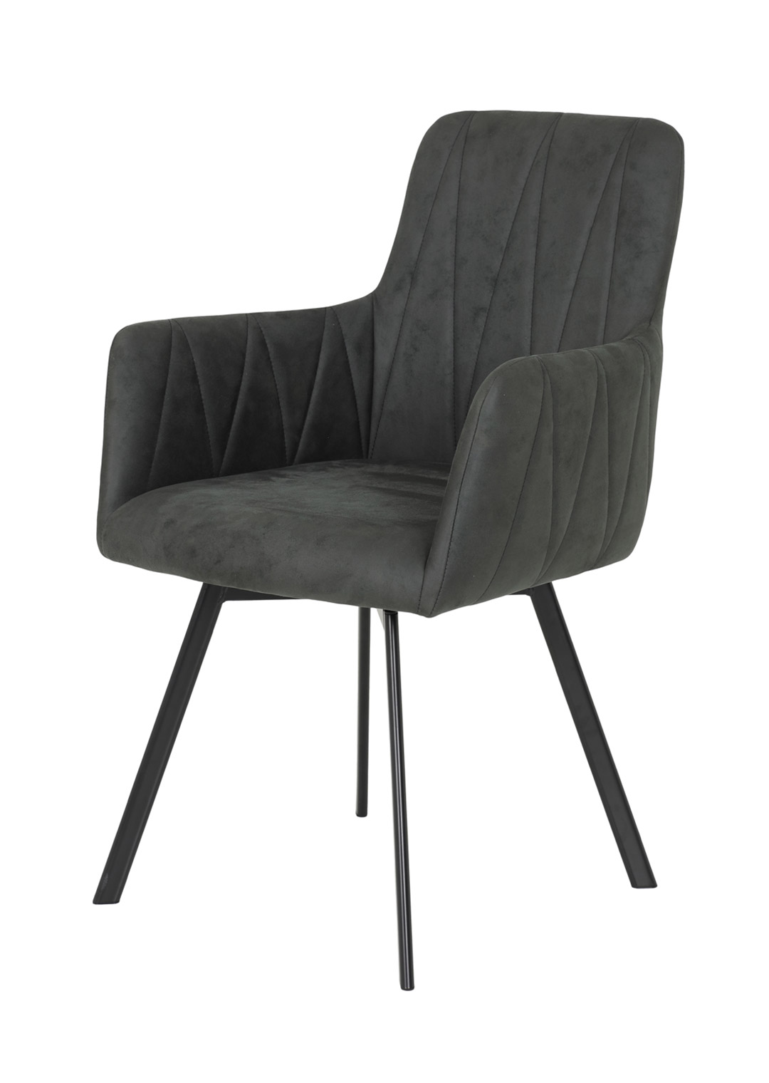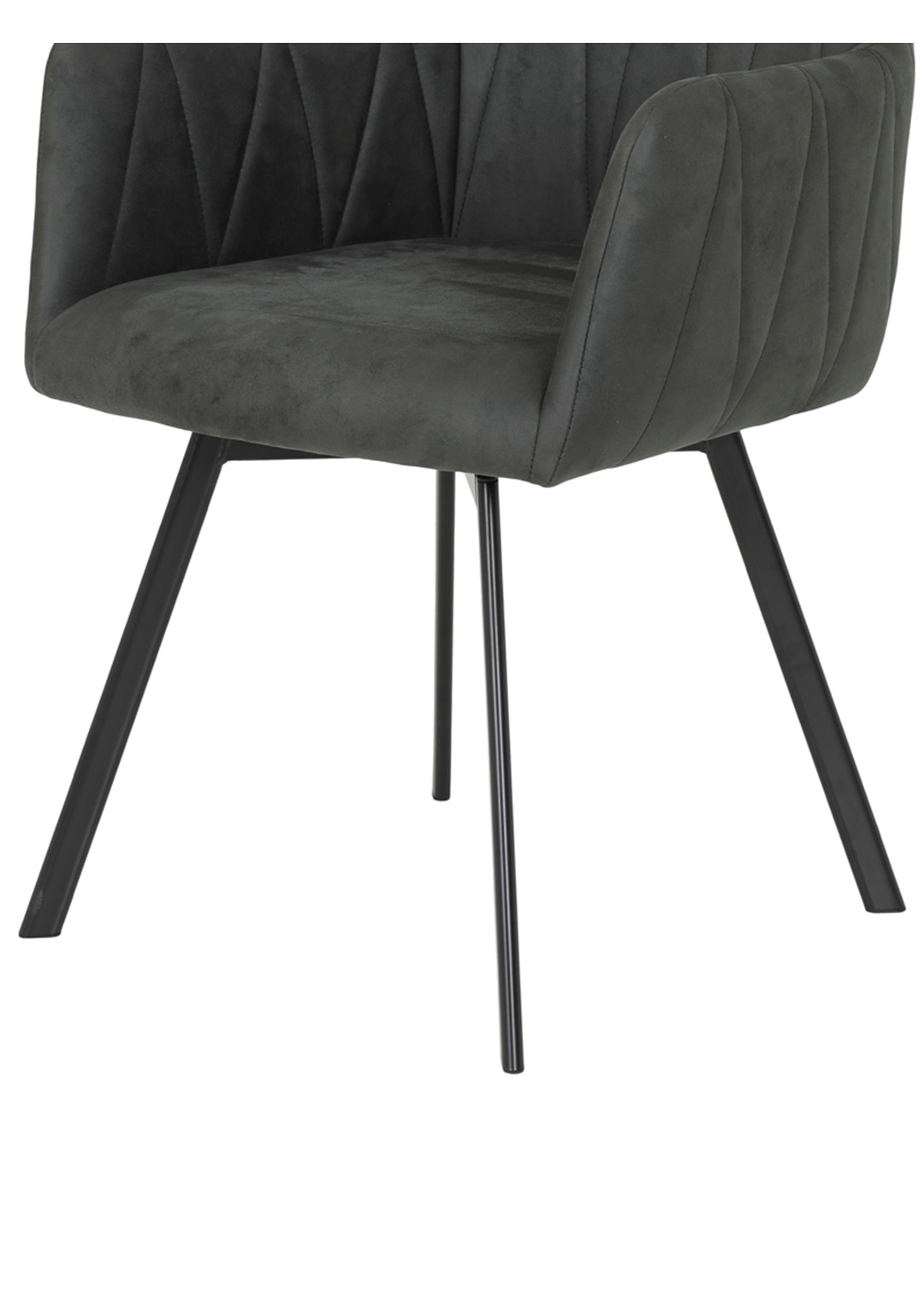 Unser Armlehnstuhl GESA ist in einem modernen Microfaser-Bezug in Vintage Optik umhüllt, der sich angenehm auf der Haut anfühlt. Durch die Farbgebung in Anthrazit lässt sich der Stuhl optimal in jeden Essbereich integrieren. Gleichzeitig erzeugen die Steppungen einen spannenden Effekt und lassen GESA zum Blickfang werden. Für die nötige Stabilität im Alltag ist ebenfalls gesorgt. Durch das gepulverte, schwarze Metallgestell lässt sich der Armlehnstuhl GESA mit bis zu max. 120 kg belasten. Gleichzeitig trägt es zur modernen Erscheinung dieses Esszimmerstuhls bei.