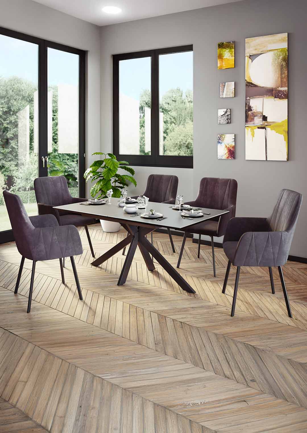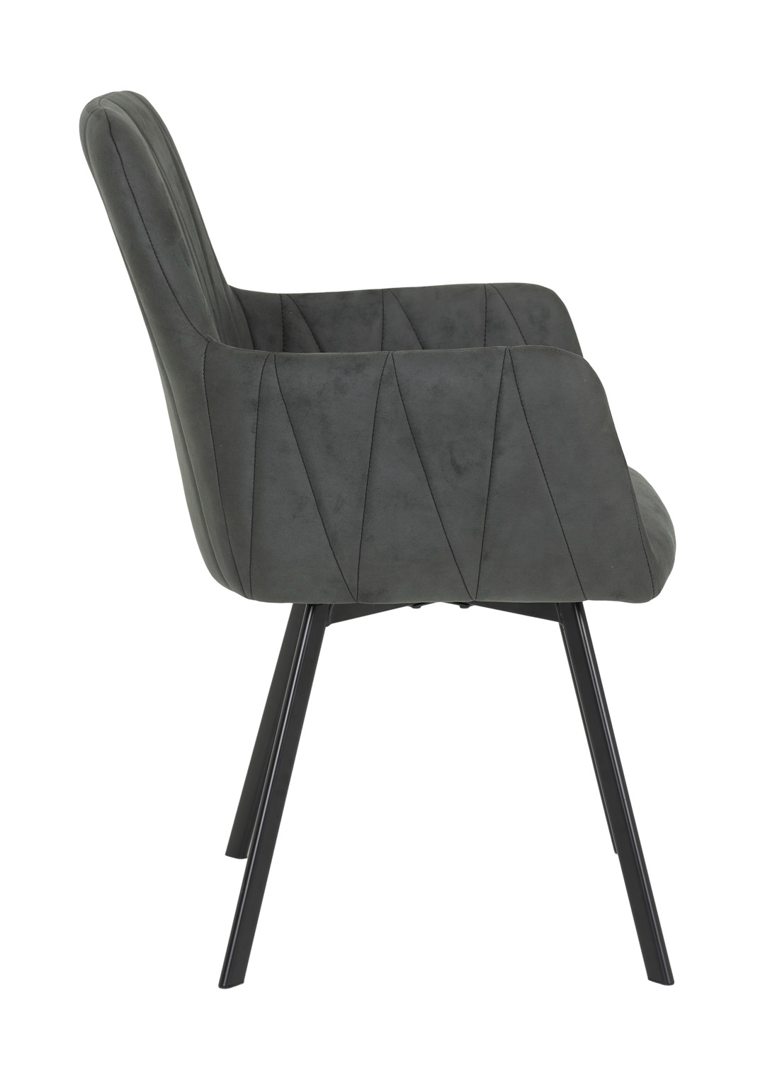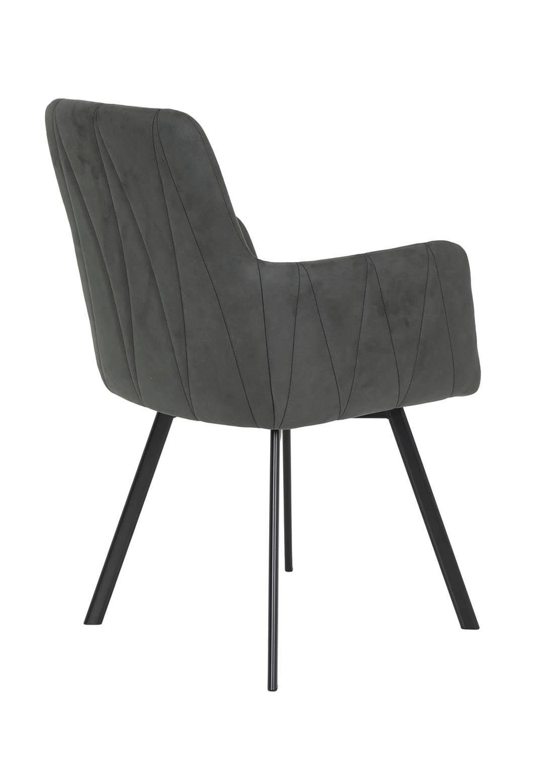 Unser Armlehnstuhl GESA ist in einem modernen Microfaser-Bezug in Vintage Optik umhüllt, der sich angenehm auf der Haut anfühlt. Durch die Farbgebung in Anthrazit lässt sich der Stuhl optimal in jeden Essbereich integrieren. Gleichzeitig erzeugen die Steppungen einen spannenden Effekt und lassen GESA zum Blickfang werden. Für die nötige Stabilität im Alltag ist ebenfalls gesorgt. Durch das gepulverte, schwarze Metallgestell lässt sich der Armlehnstuhl GESA mit bis zu max. 120 kg belasten. Gleichzeitig trägt es zur modernen Erscheinung dieses Esszimmerstuhls bei.