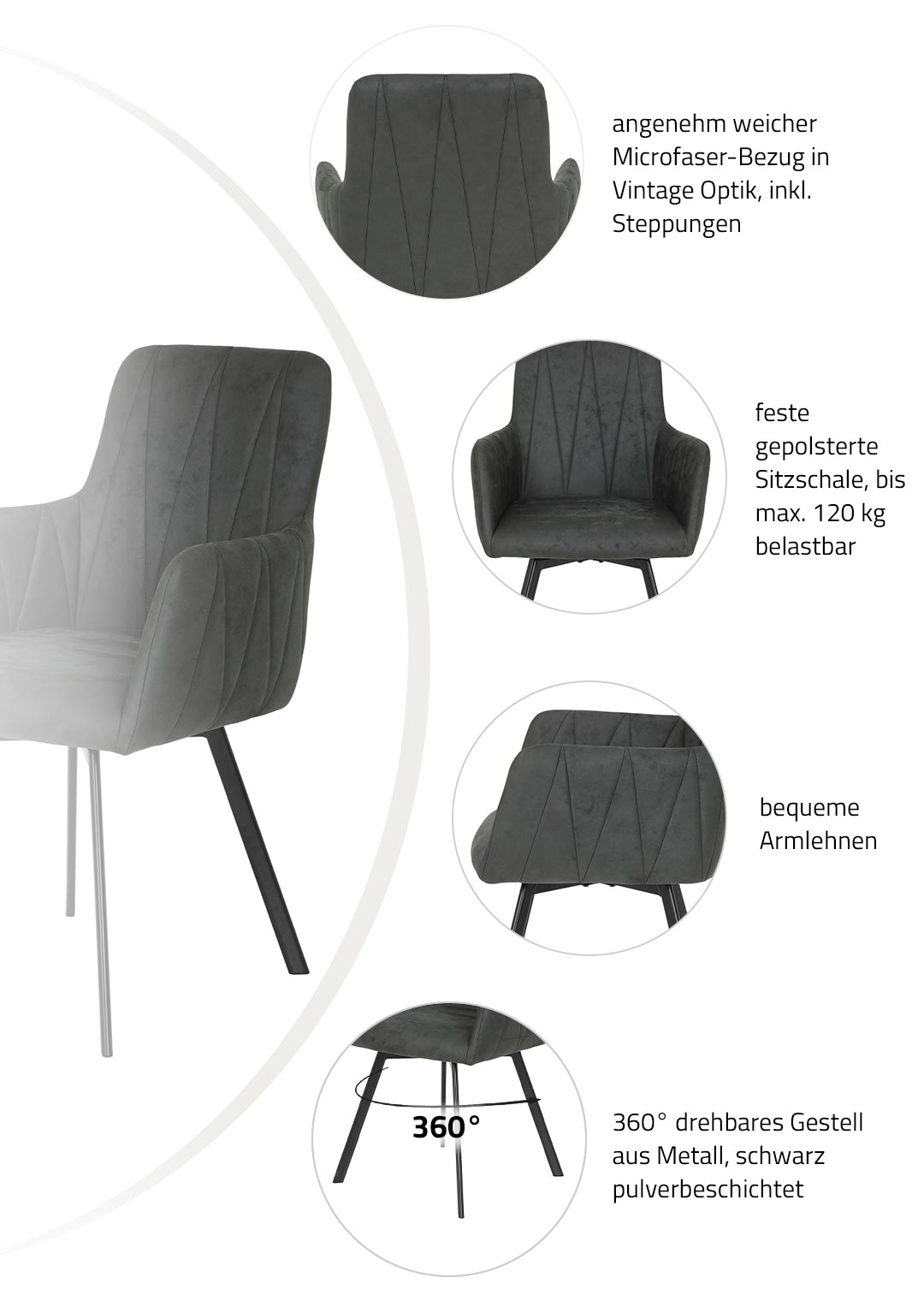 Armlehnstuhl anthrazit Drehstuhl Esszimmerstuhl - GESA