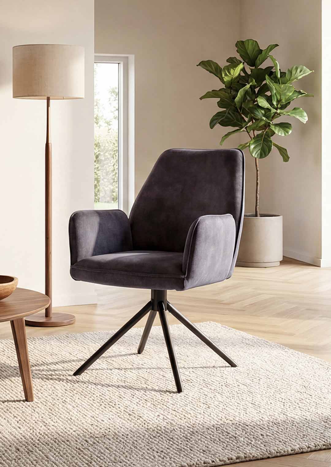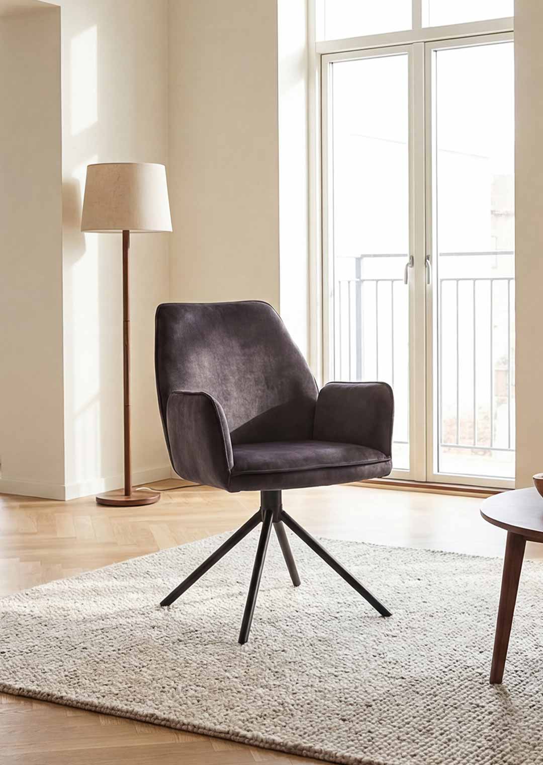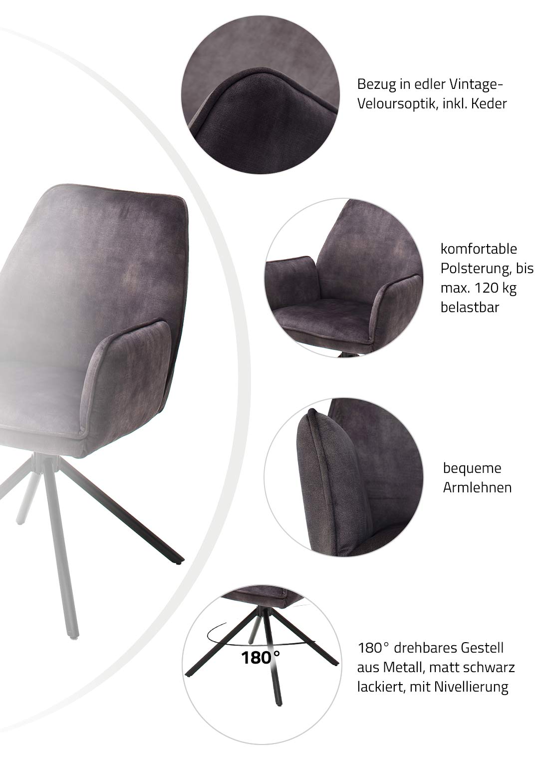 Armlehnstuhl anthrazit Velours Optik Drehstuhl - OTTAWA