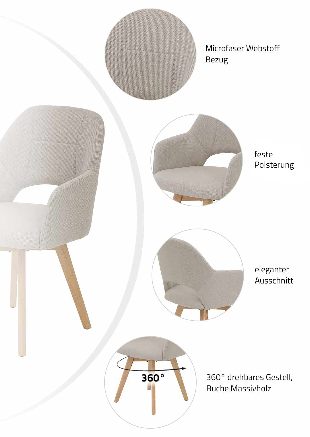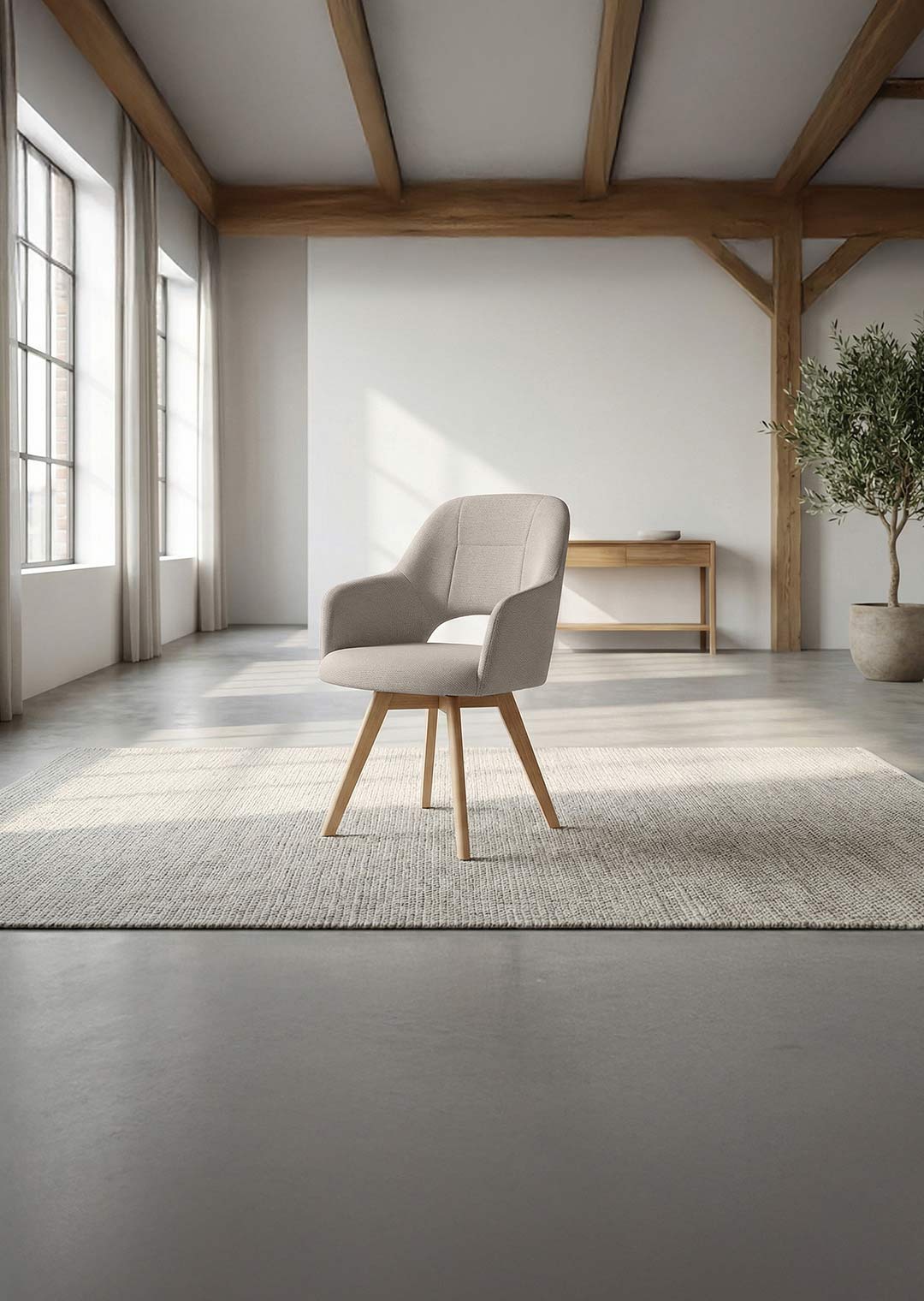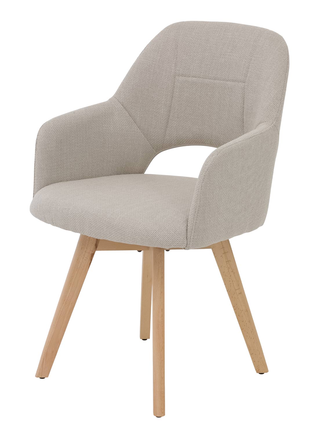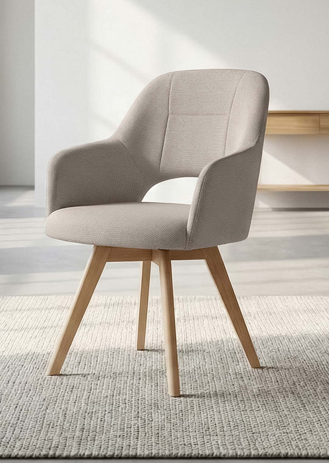 Armlehnstuhl beige - 360 Grad drehbar - Beine Massivholz - STADE