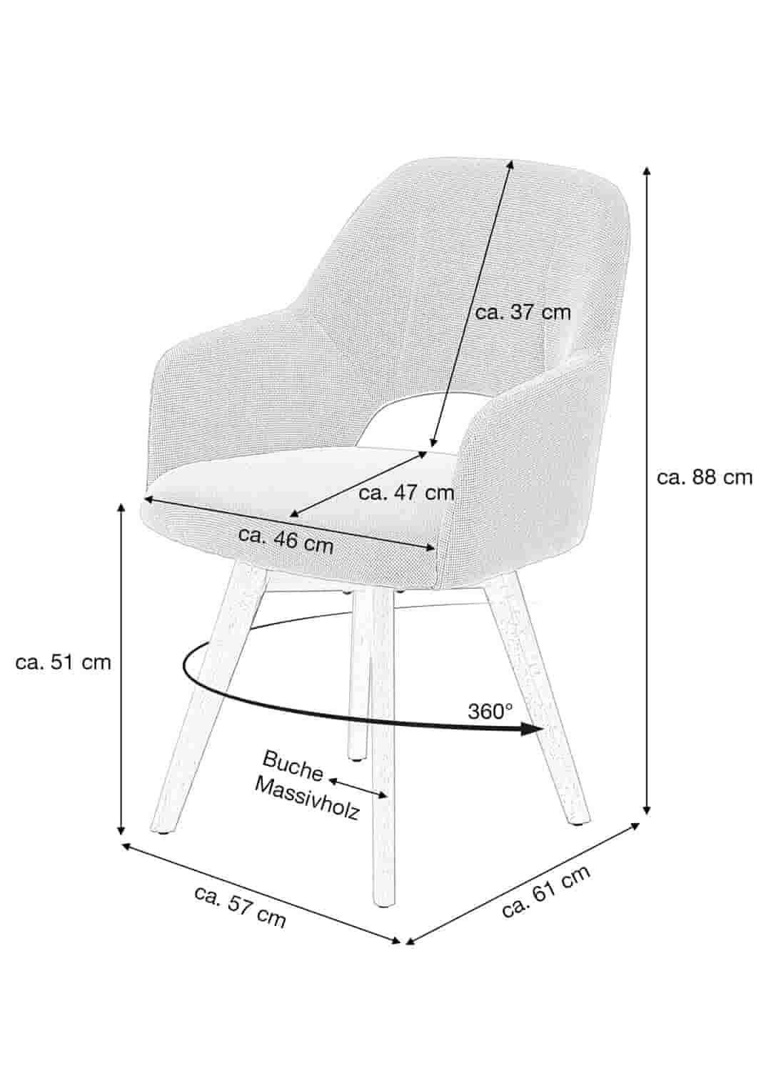 Mit dem Armlehnstuhl STADE erhalten Sie aber ein Möbelstück, das nicht nur gut aussieht, sondern auch jede Menge Komfort in Ihr Zuhause bringt. Die großzügige Sitzfläche mit einer Sitzhöhe von ca. 51 cm, einer Sitztiefe von ca. 47 cm und einer Sitzbreite von ca. 46 cm bietet ausreichend Platz für entspanntes Sitzen. Hohe Armlehnen bieten zusätzlichen Komfort. Der Armlehnstuhl STADE ist 360 Grad drehbar, was ihn äußerst praktisch und flexibel macht. Er ist der optimale Begleiter für gesellige Runden am Esstisch. Die fest gepolsterte Sitzschale sorgt für ergonomisches Sitzen und lädt zum Verweilen ein. Ob als bequemer Lesestuhl oder stilvolles Möbelstück im Esszimmer, mit dem Armlehnstuhl STADE genießen Sie entspannte Stunden Zuhause. Bestellen Sie Ihren neuen Armlehnstuhl STADE noch heute online. Wir freuen uns auf Sie!Produktdetails: |