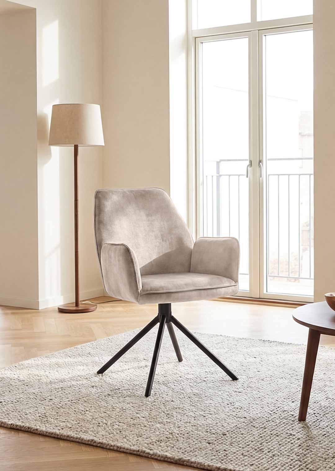 Armlehnstuhl creme Velours Optik Drehstuhl - OTTAWA