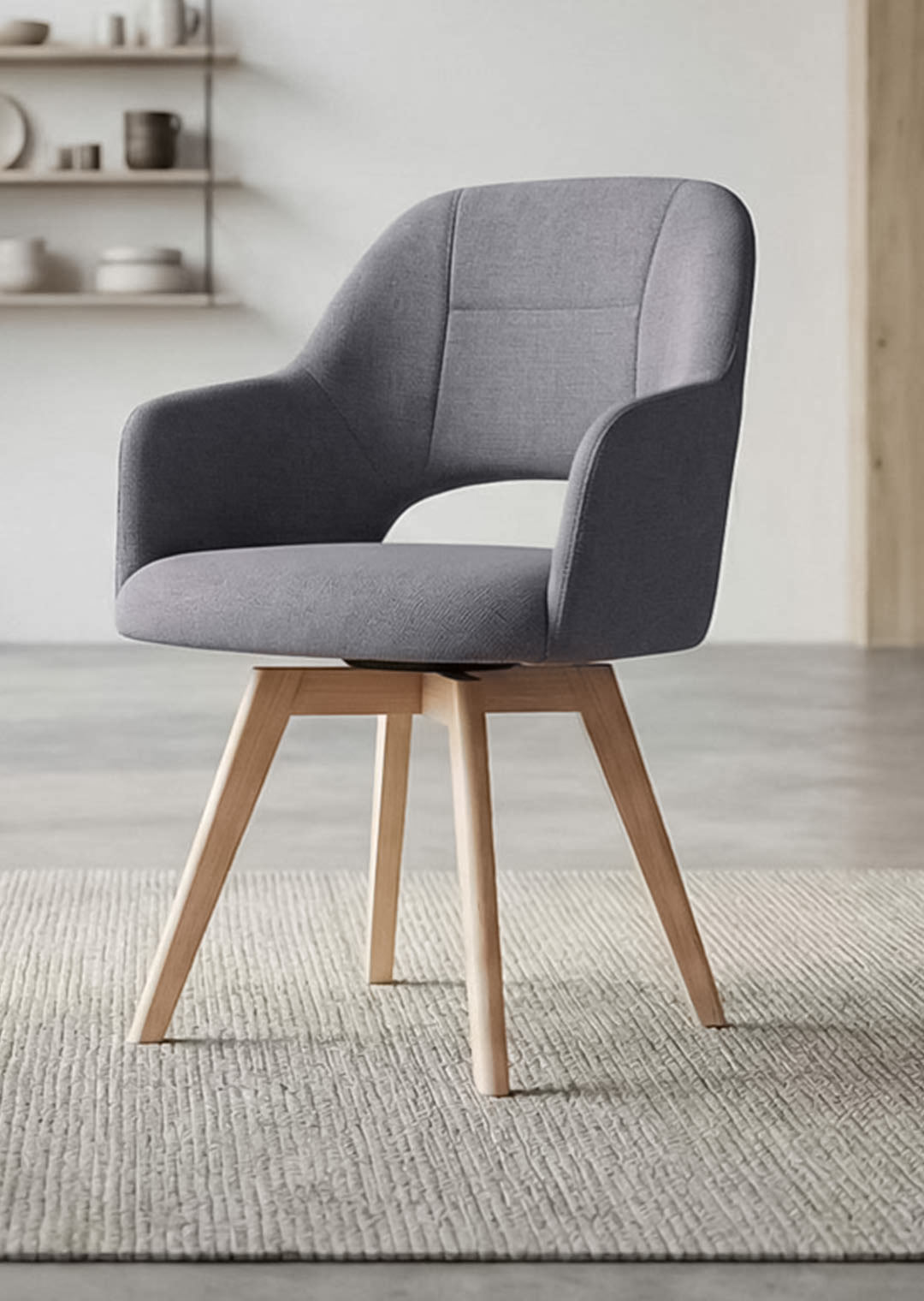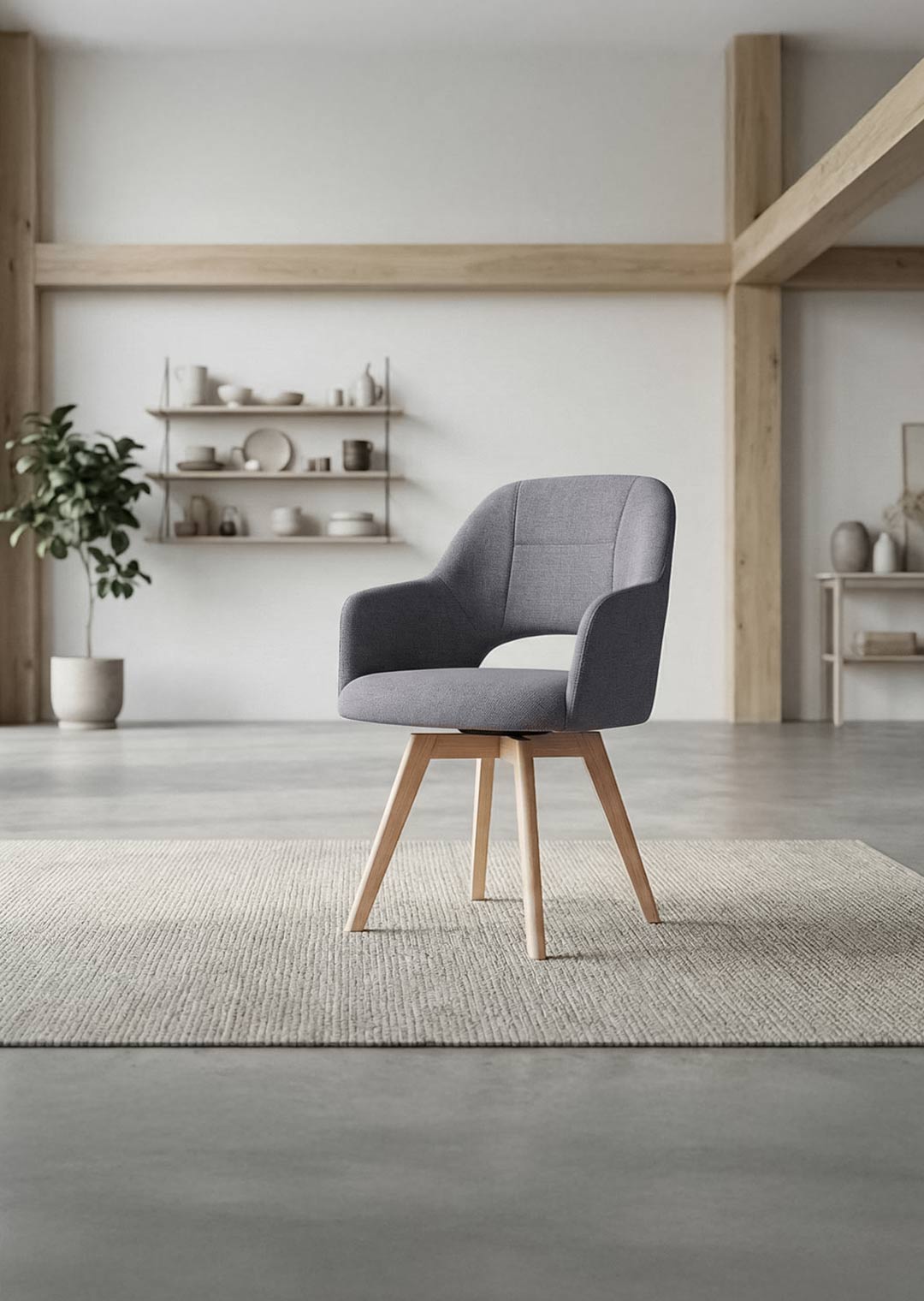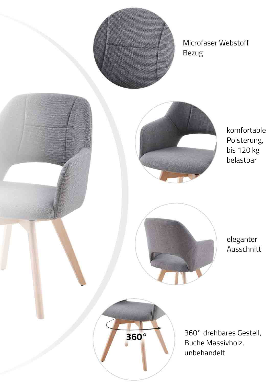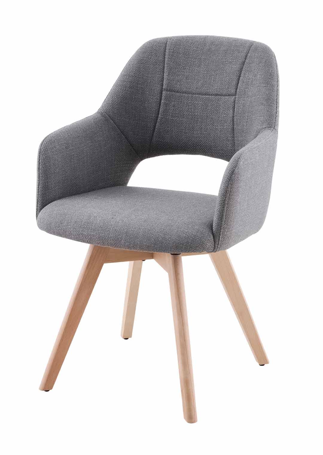 Armlehnstuhl grau - 360 Grad drehbar - Beine Massivholz - STADE