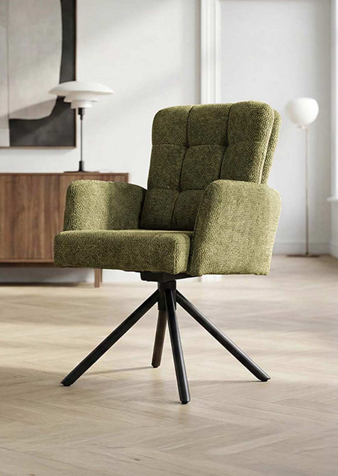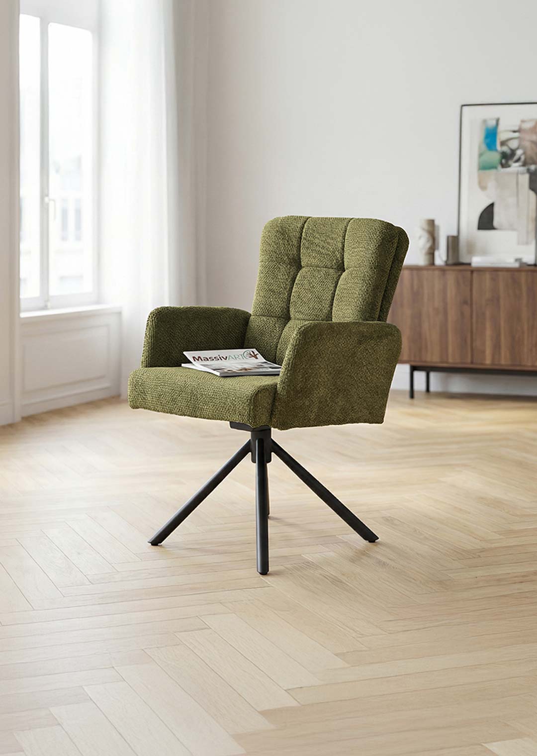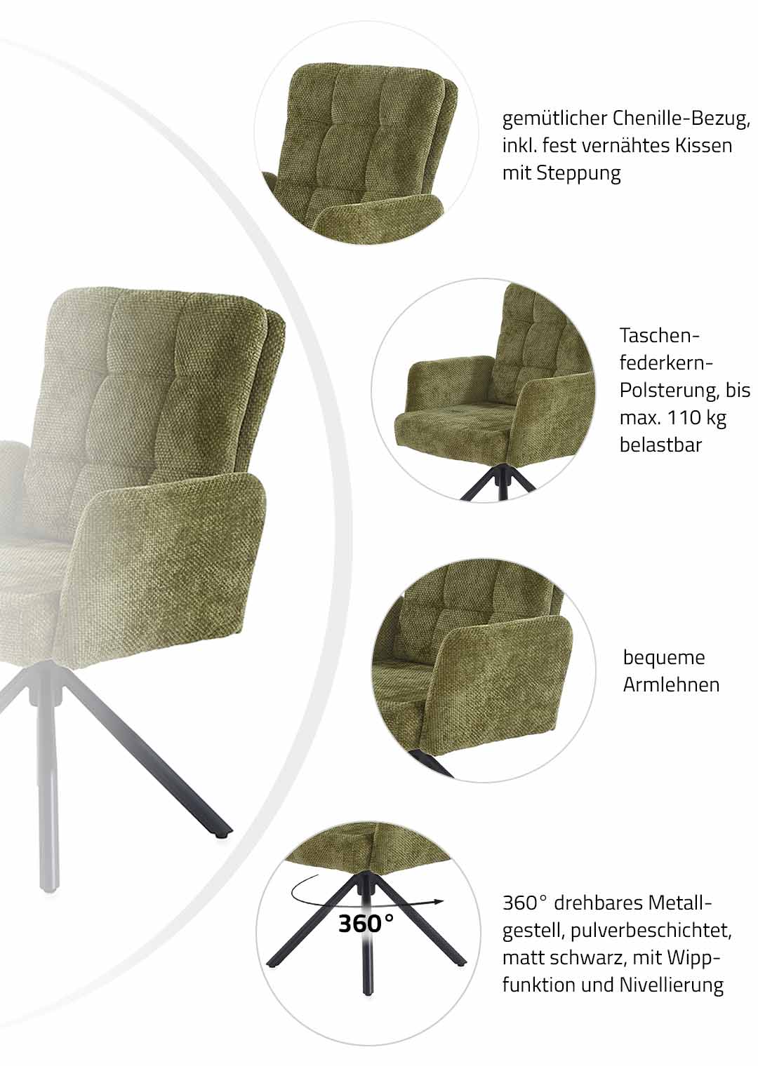Armlehnstuhl grün Drehstuhl Taschenfederkern Chenille - HEDIA