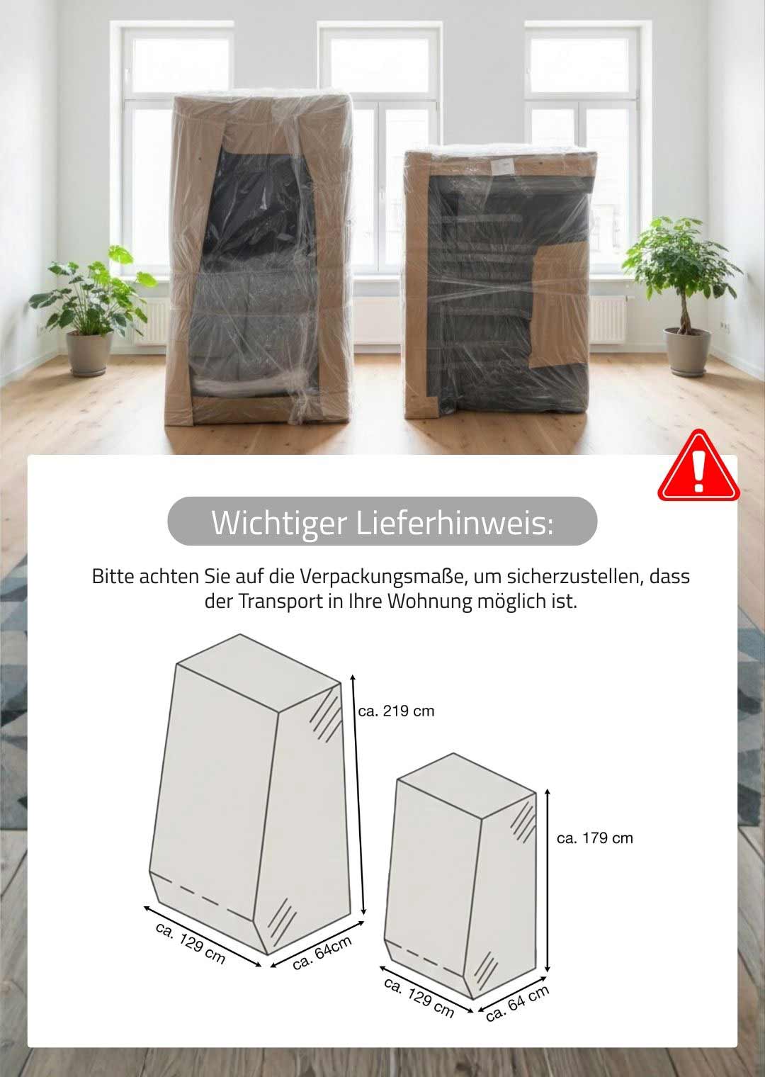 | Paket 1 (Breite/Höhe/Tiefe in cm) | 179/64/129 |