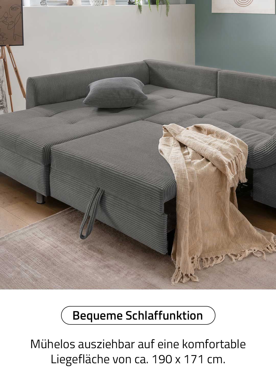 - inkl. Schlaffunktion mit einer Liegefläche von ca. 190 x 171 cm