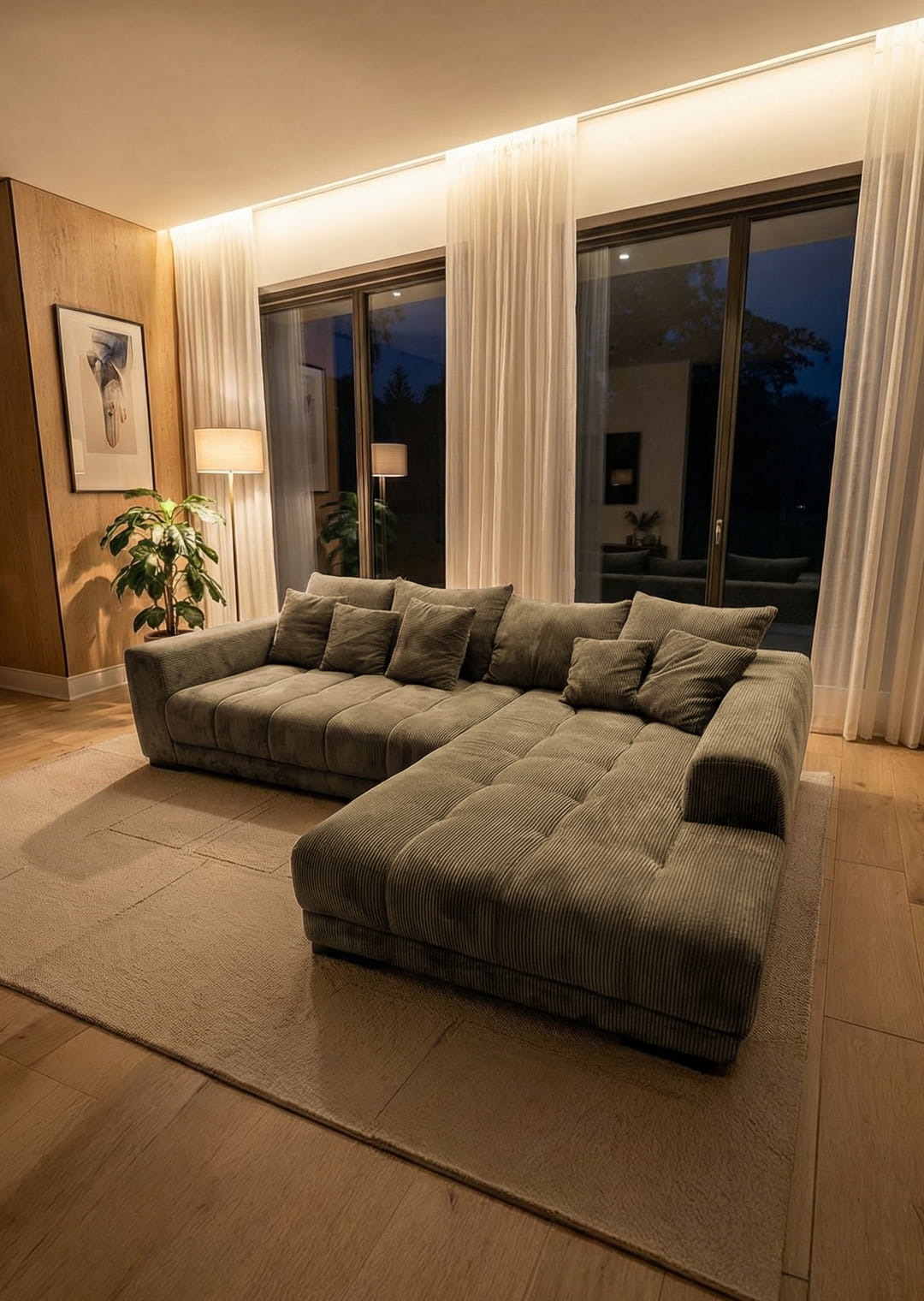 dieses Ecksofa hat mir direkt gut gefallen. Die Farbe. Der Cordstoff. extrem bequem. jeder hat genügend Platz.