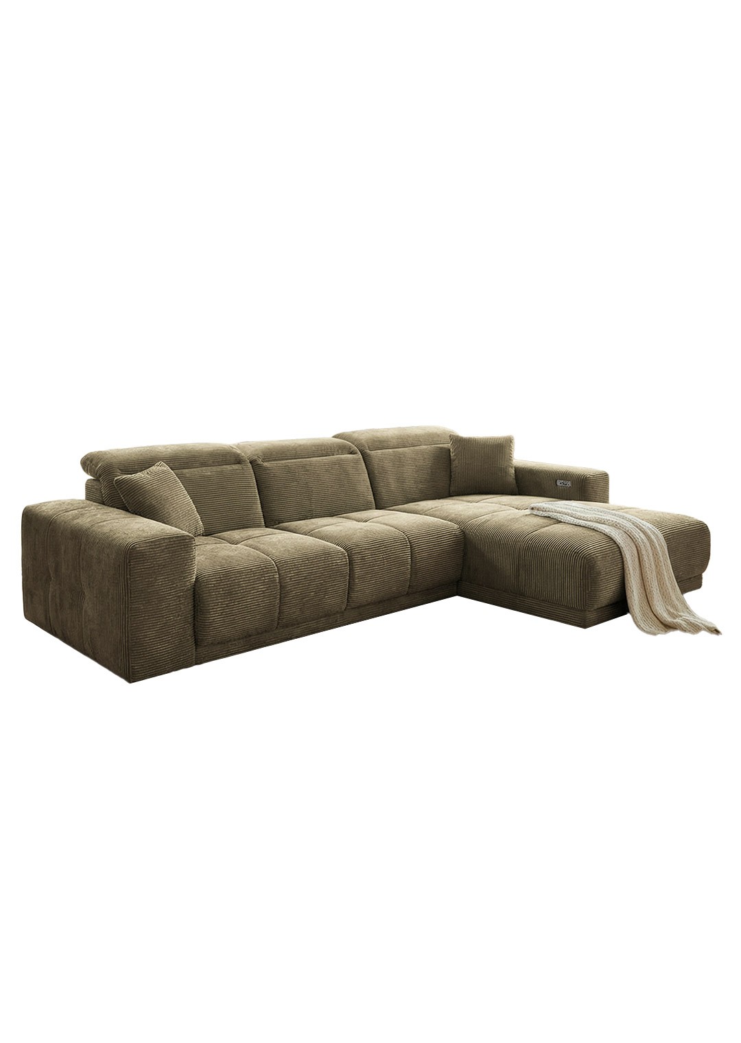 Ecksofa Cord grün 302 cm - elektrische Relaxfunktion - TONI