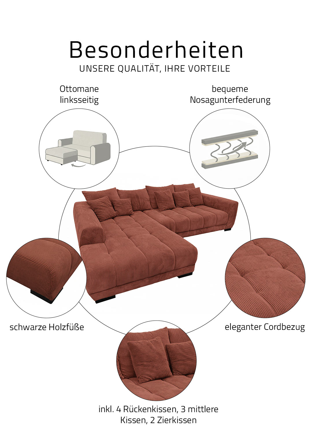 Ecksofa Cord rost 300 x 215 cm - OT links - ARTEMIS