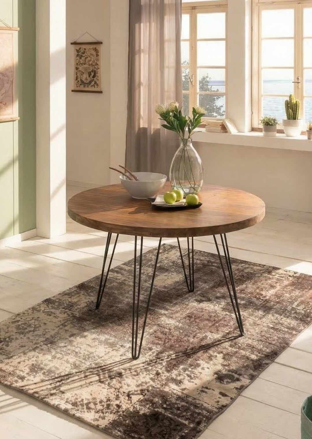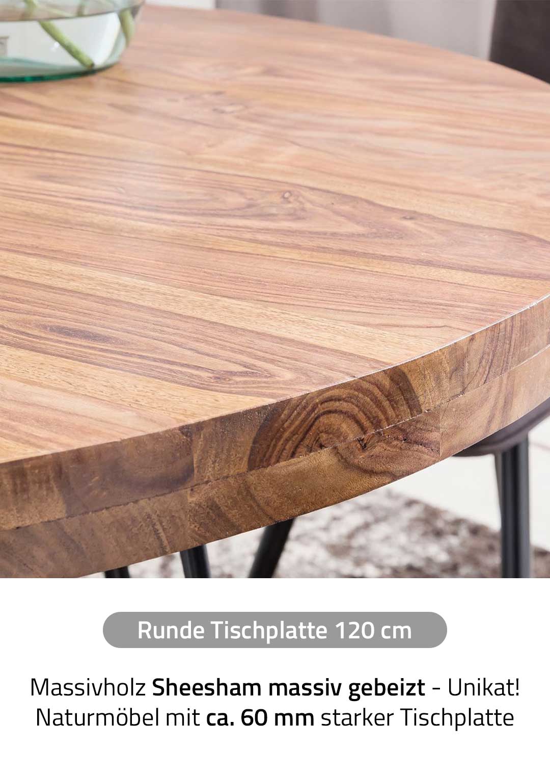 Esstisch 120 cm rund Sheesham massiv gebeizt - NORR