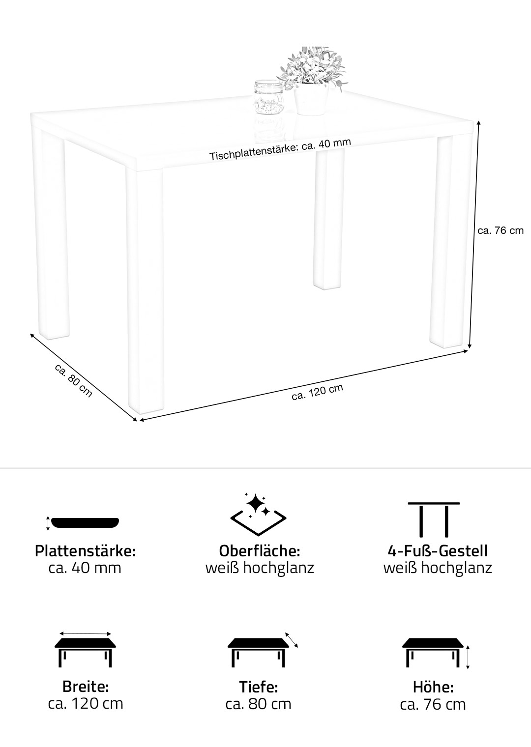 Esstisch in weiß hochglanz - 120 x 80 cm - OLGA