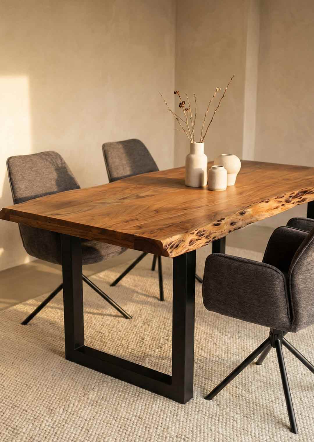 Jeder Baumkantentisch begeistert durch beeindruckende Farbtöne, eine wunderbare intensive Maserung und einem außergewöhnlichen Design. Somit wird jeder Baumkantentisch zu etwas ganz besonderem. Wir kombinieren die natürliche Optik des Holzes mit seiner wärmenden Ausstrahlung mit modernen Elementen aus Eisen, Metall oder Stahl. So entsteht ein einzigartiges Möbelstück mit wunderbarem Charme und eigener Ausdrucksstärke. Lassen Sie sich von unseren hochwertigen Massivholzmöbeln aus Akazie begeistern.