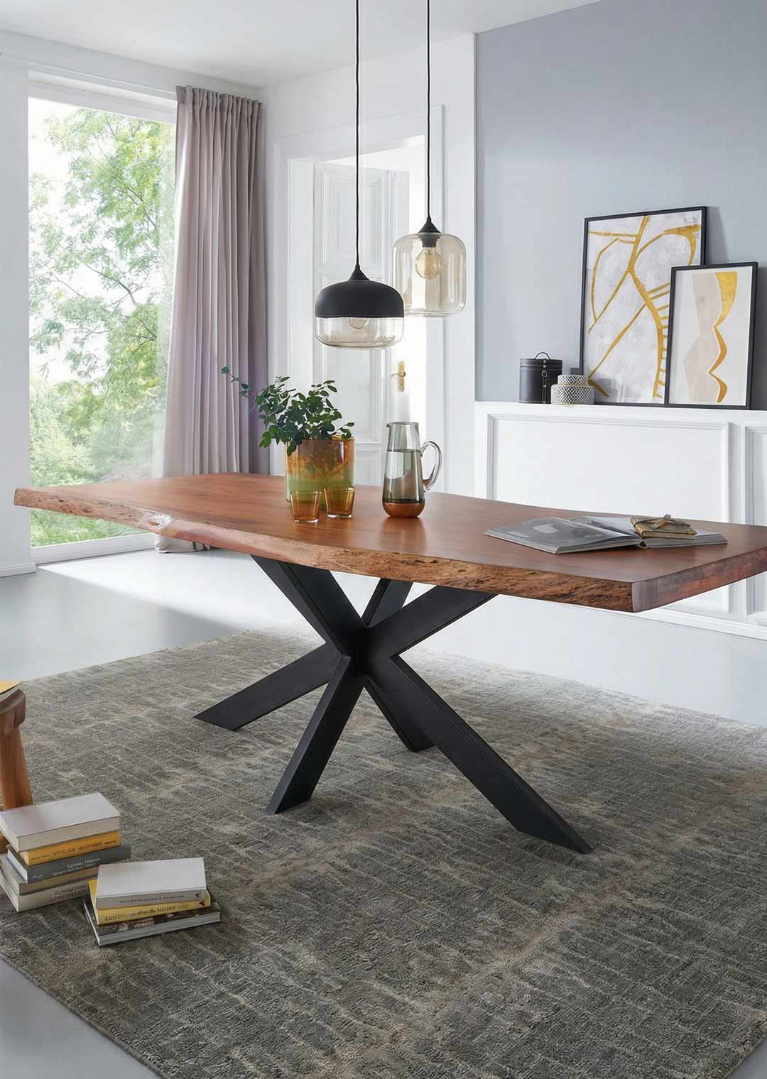 | Eigenschaften | Tischbeine Metall als Spider-Gestell, echte Baumkante, Naturprodukt mit natürlichen Farbabweichungen und Unebenheiten |