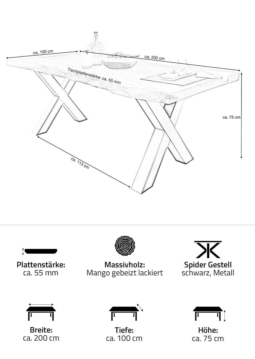 Esstisch Baumkantentisch 200 cm massiv Mango - TOMASO