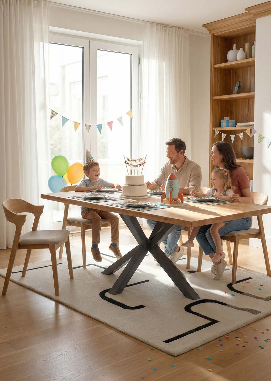 Toller Massivholztisch. Unsere Familie hat genug Platz und die Verarbeitung ist sehr gut.