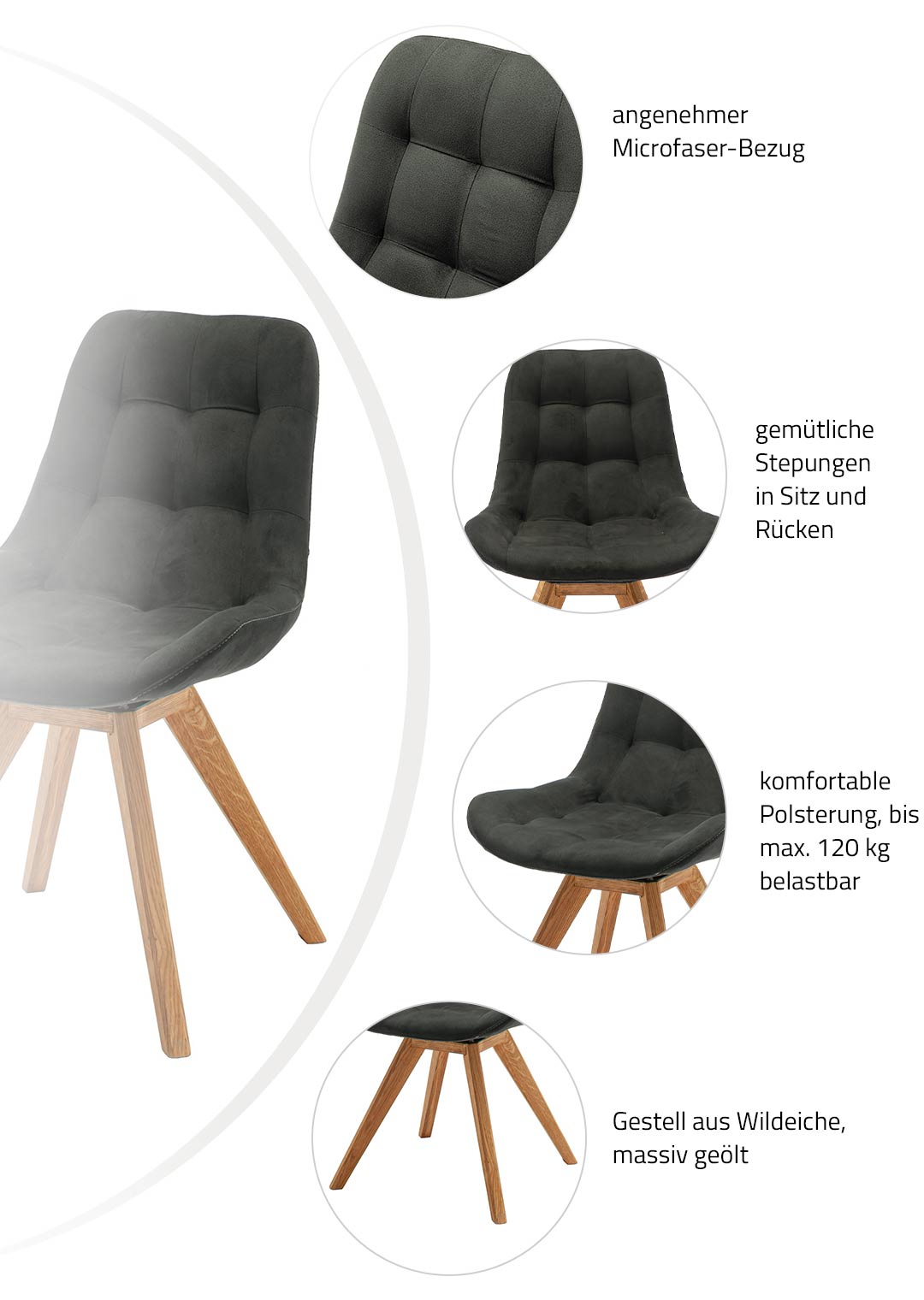 Polsterstuhl anthrazit Wildeiche - Microfaser - BELFAST