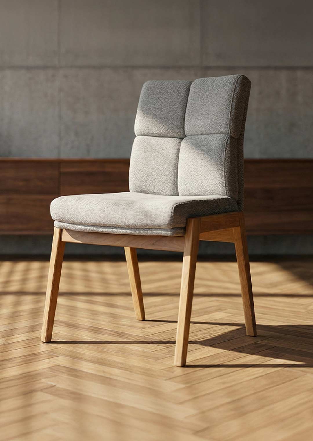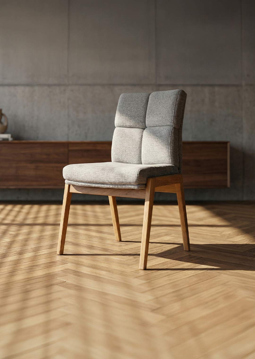 Polsterstuhl grau - Stuhlbeine in Wildeiche massiv geölt - LAUREN