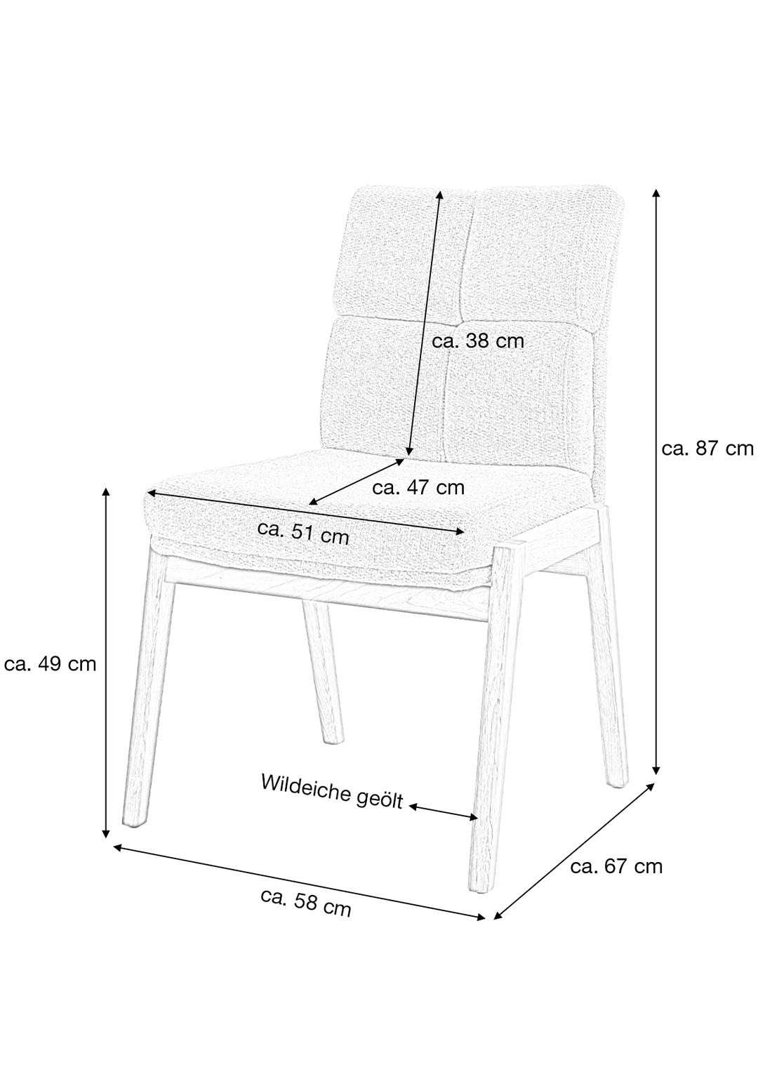 Funktionalität trifft Komfort - der Polsterstuhl LAUREN ist für echte Wohlfühlmomente gemacht: Vier Stuhlbeine aus massiver, geölter Wildeiche bieten zuverlässigen Halt beim Sitzen und verleihen dem Möbelstück eine warme, natürliche Ausstrahlung. Das langlebige Massivholz punktet mit seiner robusten Qualität und der einzigartigen Holzmaserung, die jeden Stuhl zu einem echten Unikat macht. Eine komfortable Polsterung und die angenehme Sitzhöhe von ca. 49 cm sorgen dafür, dass man gar nicht mehr aufstehen möchte - ob beim gemütlichen Abendessen, beim Lesen oder beim langen Beisammensitzen mit Familie und Freunden.