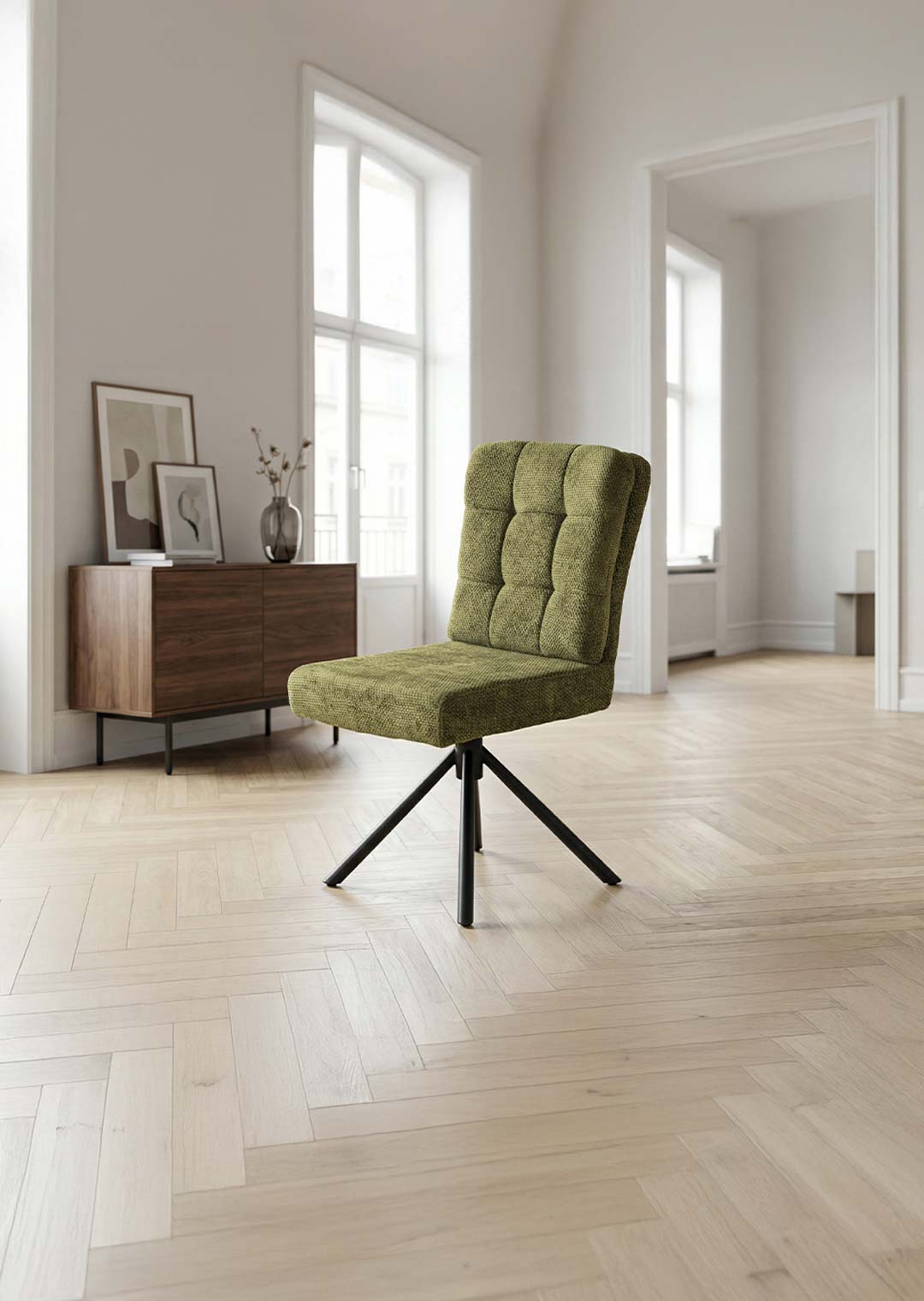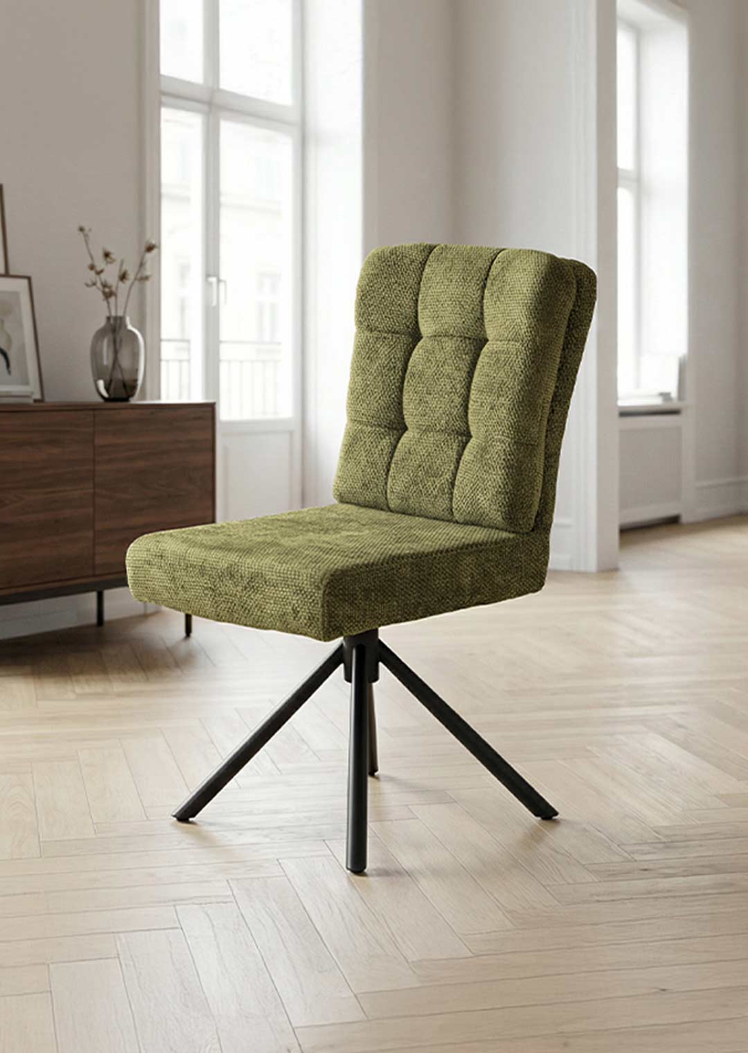 Polsterstuhl grün Drehstuhl Taschenfederkern Chenille - HEDIA