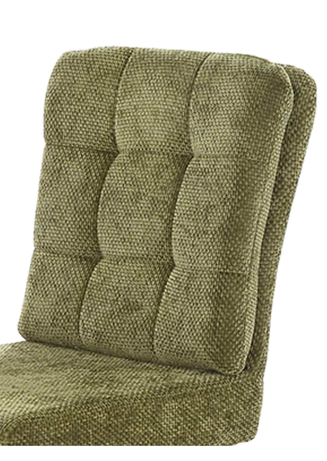 Unser Polsterstuhl HEDIA erscheint in einem hochwertigen Chenille-Bezug in Grün. Dieser überzeugt durch seine besonders weiche Haptik und lädt zum Verweilen ein. Die Rückenlehne ist mit einem fest vernähten, aufgesetzten Kissen versehen, das dem Stuhl eine besondere Gemütlichkeit verleiht. Die auffällige Steppung im Kissen betont diese Gemütlichkeit noch zusätzlich. Für einen festen Stand im Alltag sorgt das pulverbeschichtete 4-Fuß-Gestell aus Metall in mattem Schwarz. Es verleiht dem Gesamtbild dieses Esszimmerstuhls eine ruhige, moderne Optik, sodass er sich harmonisch in klassische, wie zeitgemäße Einrichtungsstile einfügt.