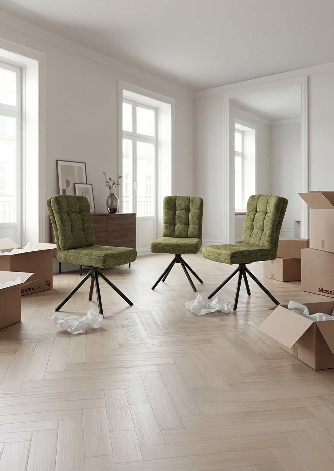 Das Sortiment der Marke Massivart® präsentiert Ihnen verschiedene Einrichtungsideen im Massivholzbereich, gepaart mit weiteren Werkstoffen wie Lederlook-, Samt- und Velourstoffen oder auch Metall. Durch die Verwendung der verschiedenen Materialien und Echtholzarten wird eine Beständigkeit zum Ausdruck gebracht, die mit einer individuellen Optik einhergeht. Wählen Sie aus unserem Sortiment z.B. Ihr neues Echtholz Sideboard oder Ihre neue Vitrine. Kombinieren Sie verschiedene Esszimmerstühle mit einem Massivholztisch Ihrer Wahl.