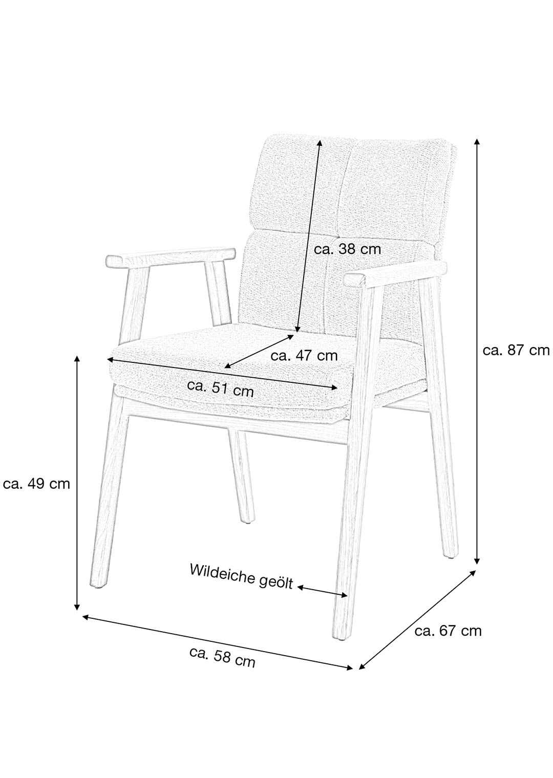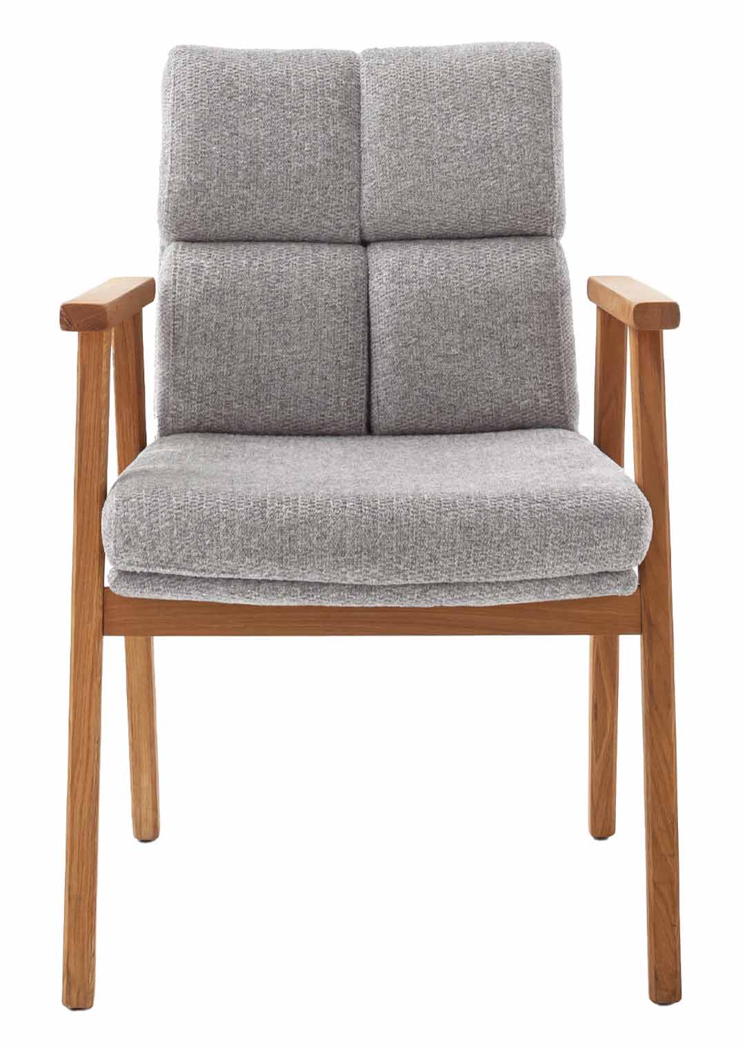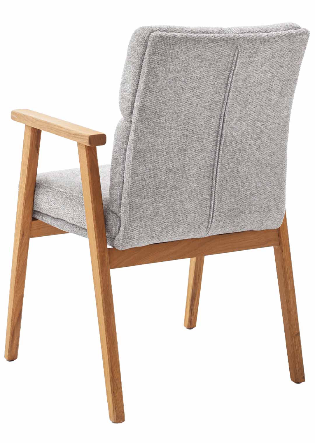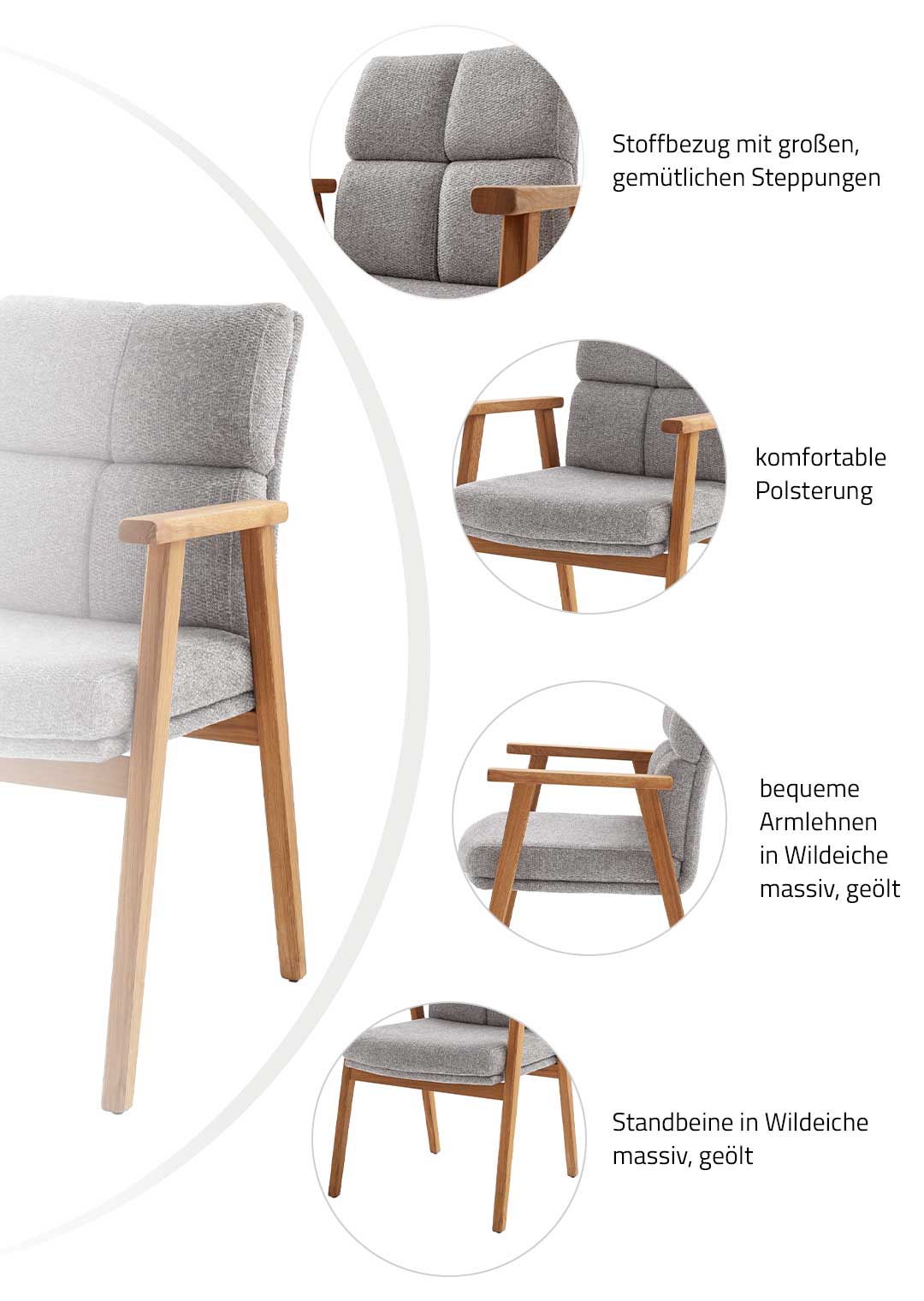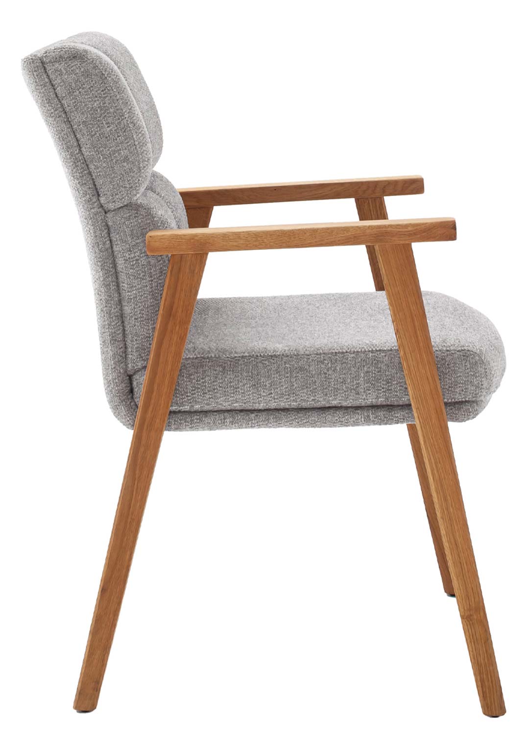 Polsterstuhl in grau - Wildeiche - mit Armlehnen - LAURENA