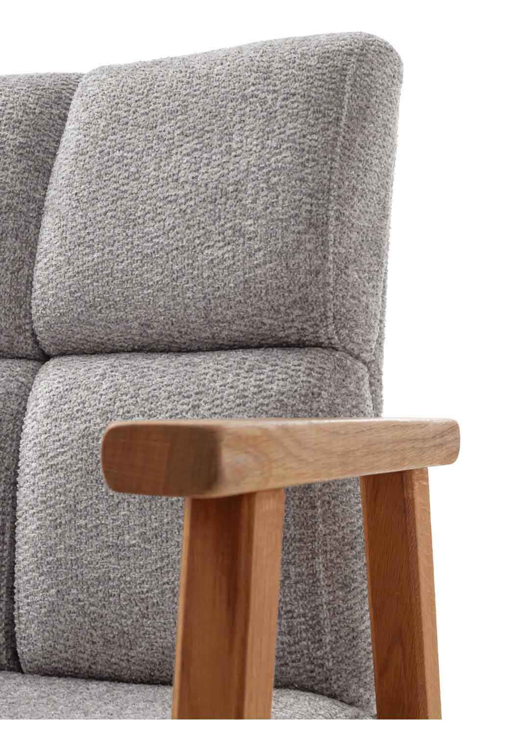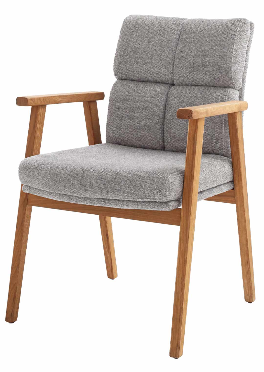 Polsterstuhl mit Armlehnen grau - Wildeiche massiv geölt - LAURENA
