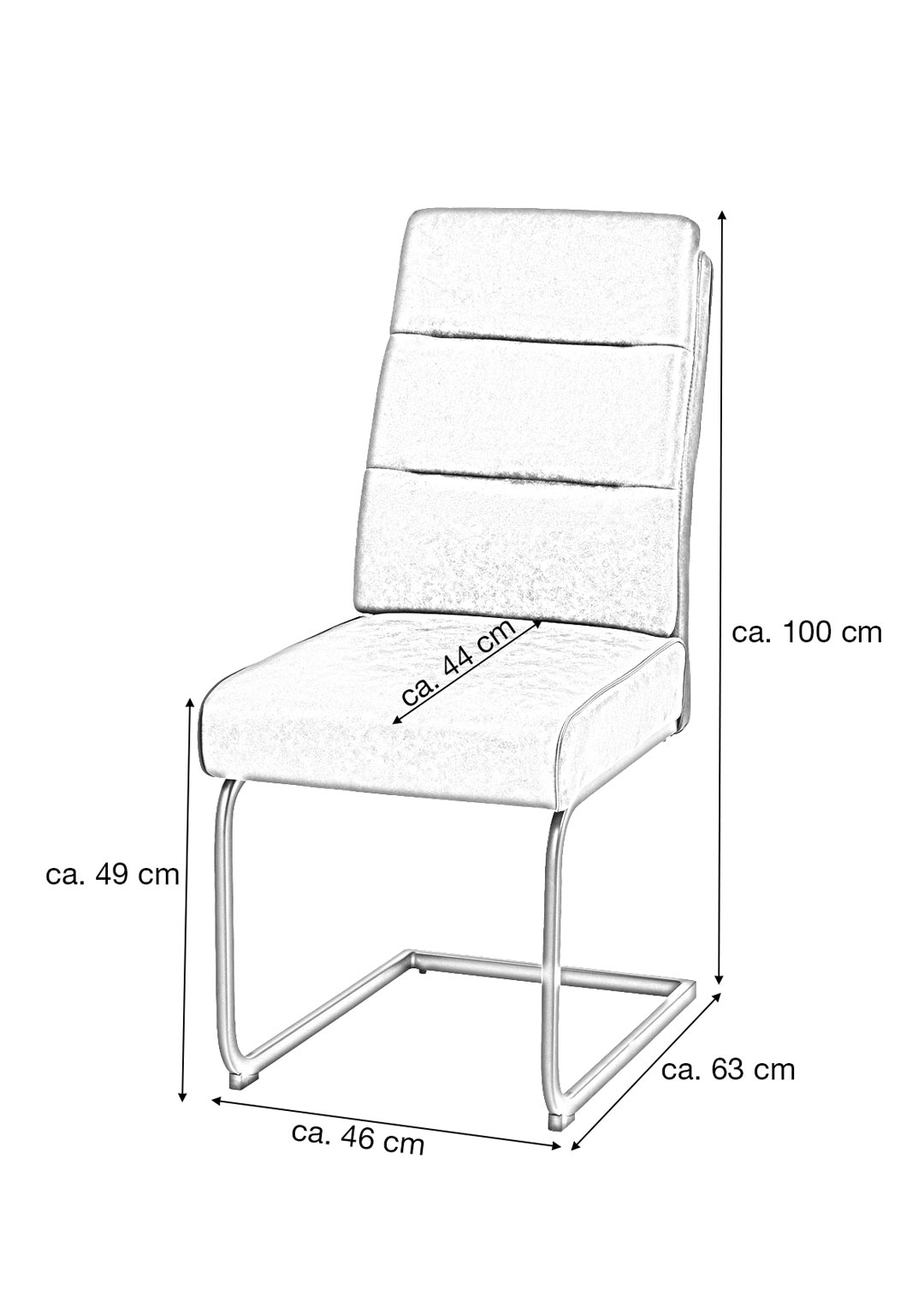 Das stabile Freischwinger-Gestell sorgt für eine angenehm federnde Bewegung beim Sitzen und sorgt dank stabiler Verarbeitung für eine Belastbarkeit von max. 110 kg. Das komfortable Sitzgefühl wird durch eine hochwertige Federkern-Polsterung verstärkt, womit der Schwingstuhl MARGA auch bei längeren Abenden am Esstisch oder bei gemütlichen Gesprächsrunden punktet. Die komfortable Sitzhöhe von ca. 49 cm und erleichtert das Aufstehen und sorgt dazu noch für eine ergonomische Sitzhaltung. Mit diesem Stuhl können Sie Komfort genießen und sich entspannt zurücklehnen.