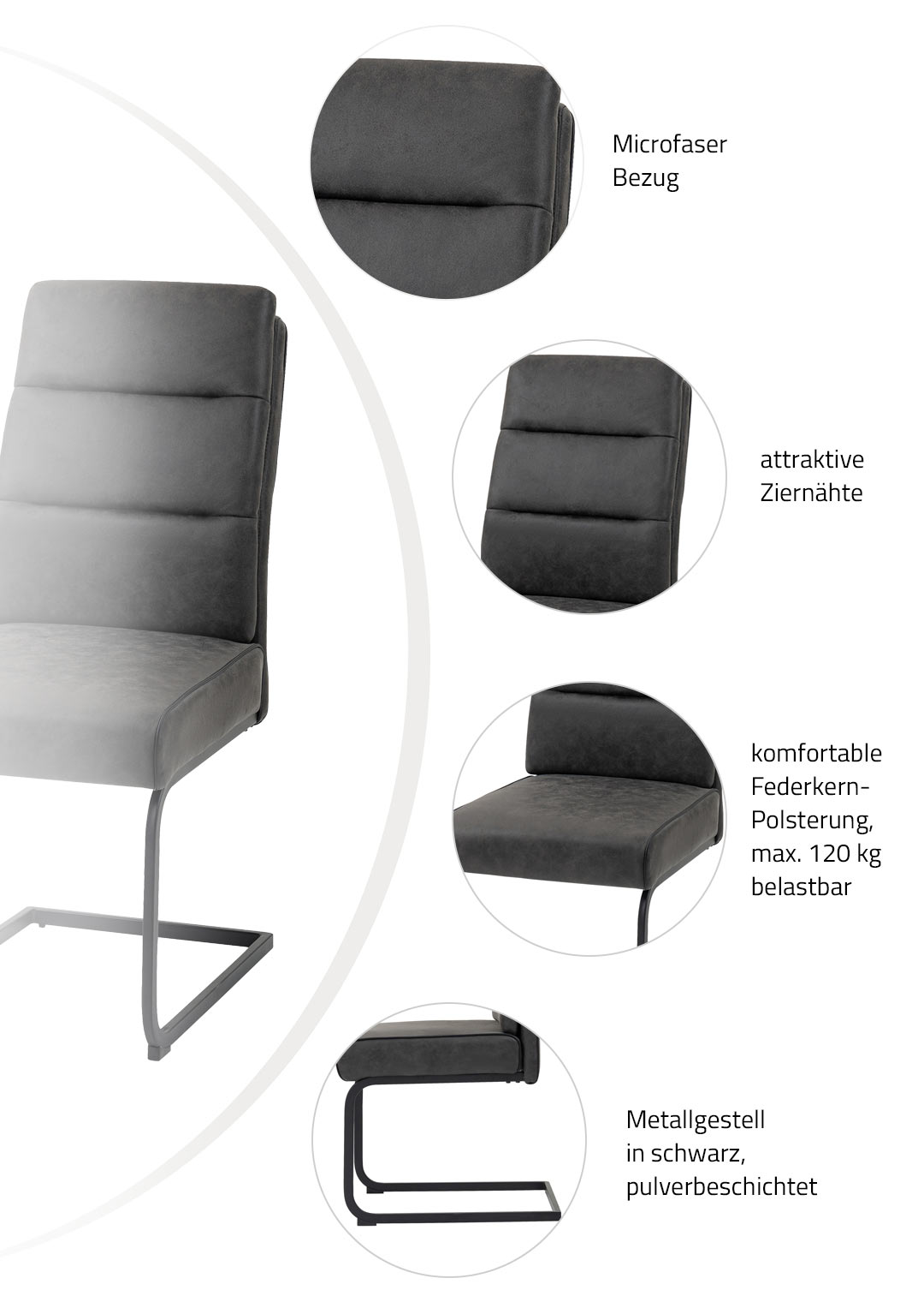 Schwingstuhl anthrazit Federkern-Polsterung Microfaser - MARGA