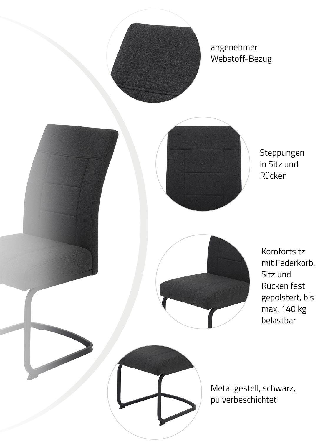 Schwingstuhl anthrazit Federkern-Polsterung Webstoff - BRINDISI
