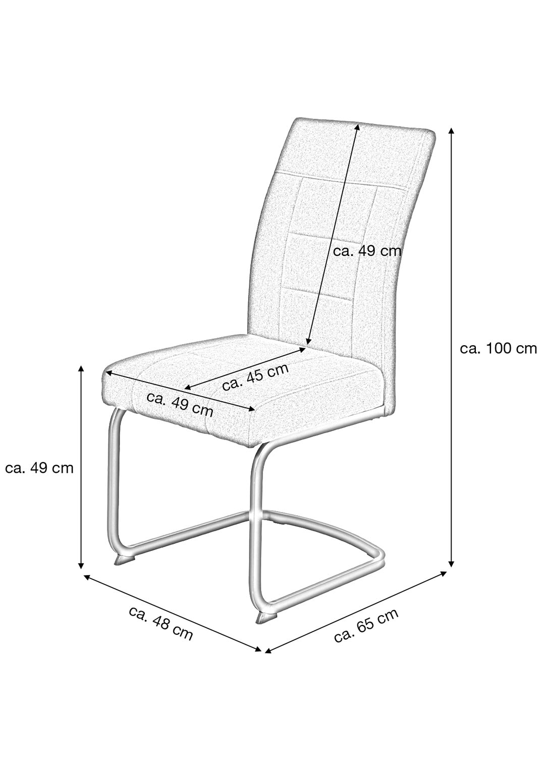Der Schwingstuhl kann jedoch noch mehr, denn neben seinem guten Aussehen bietet er auch besten Sitzkomfort. Sitz und Rücken des Schwingstuhls BRINDISI sind fest gepolstert, was eine ergonomische Sitzhaltung fördert. Mit einer komfortablen Höhe von ca. 49 cm ermöglicht die Rückenlehne ein entspanntes Zurücklehnen. Die schwingende Funktion des Stuhls passt sich harmonisch den Bewegungen Ihres Körpers an, entlastet so den Rücken und fördert eine aktive Sitzhaltung. Der Komfortsitz mit Federkorb, einem speziellen Federsystem, ermöglicht dabei eine optimale Druckverteilung und ein angenehmes Sitzgefühl, in dem sich die Federn perfekt der Körperform anpassen. Zuverlässigen Halt bietet der Stuhl dank einer maximalen Belastbarkeit von ca. 140 kg. Und mit einer Sitzbreite von ca. 49 cm hat der Schwingstuhl BRINDISI eine angenehm große Sitzfläche, auf der Sie bequem Platz nehmen können.