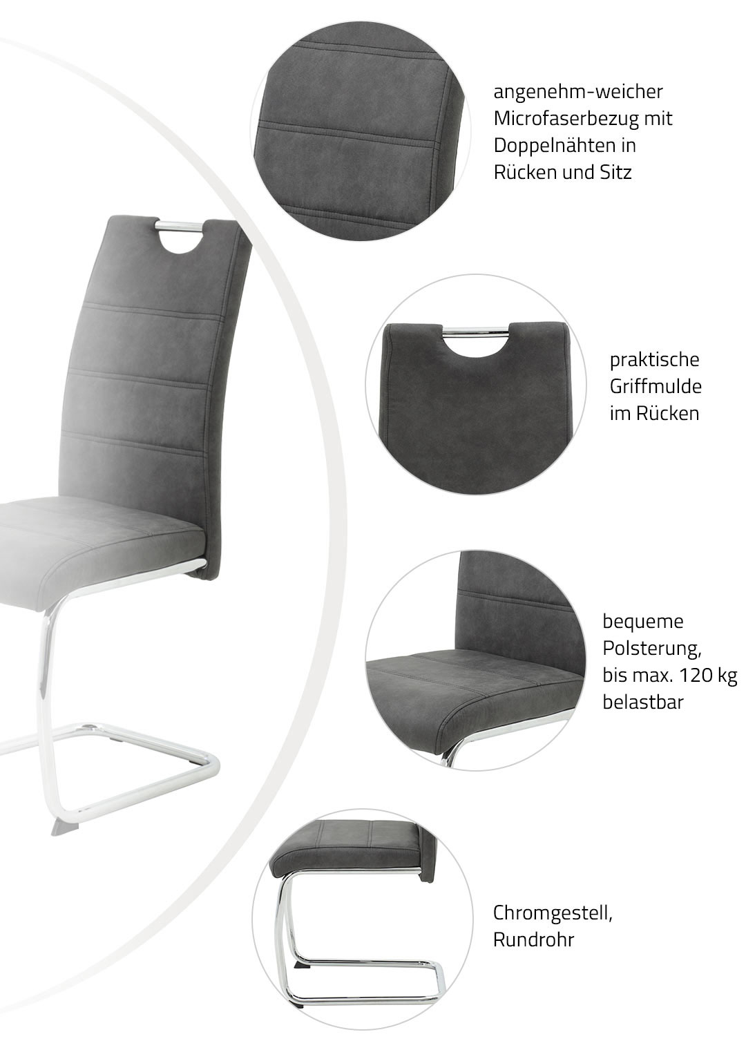 Schwingstuhl anthrazit mit Microfaserbezug - FLORA