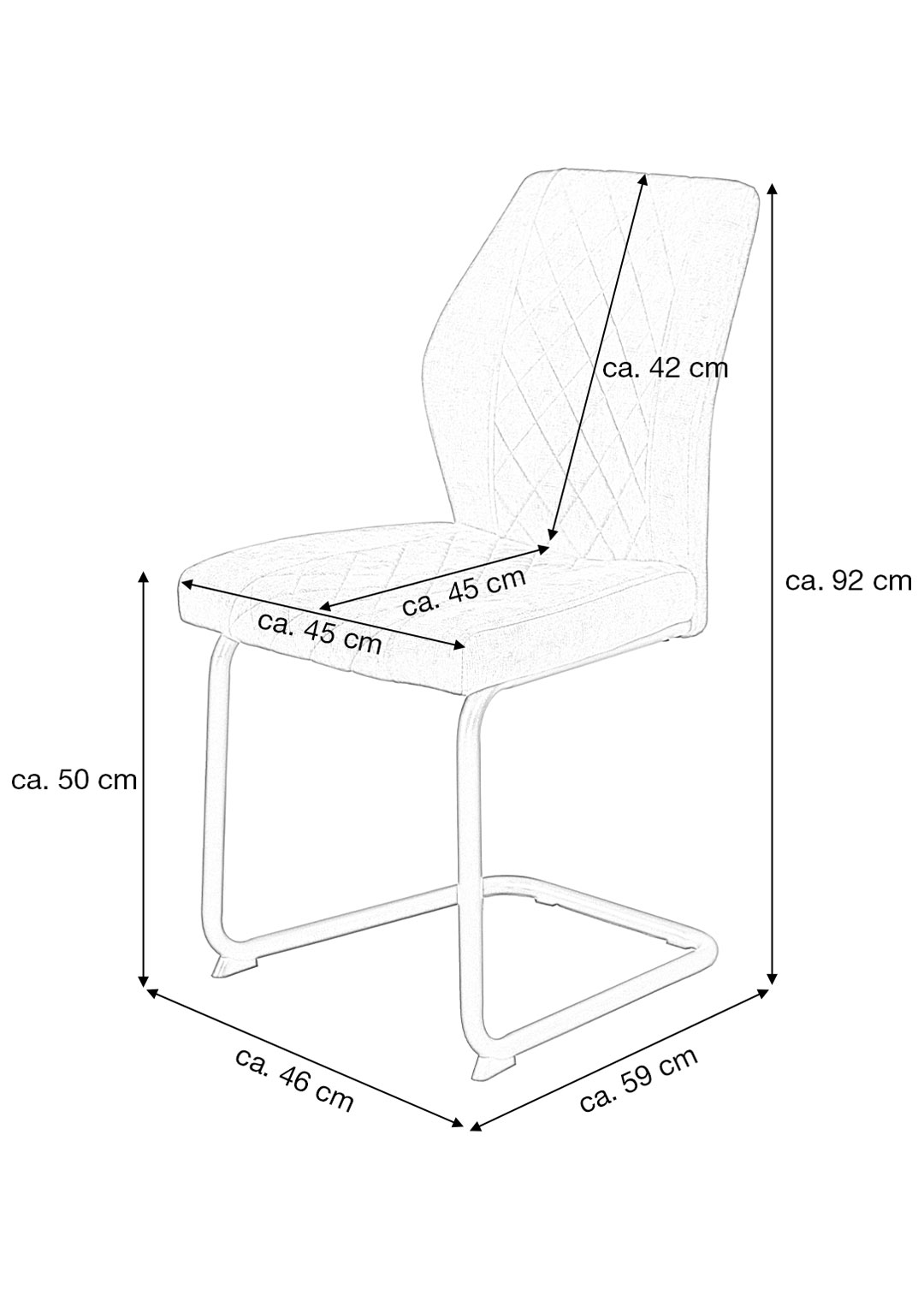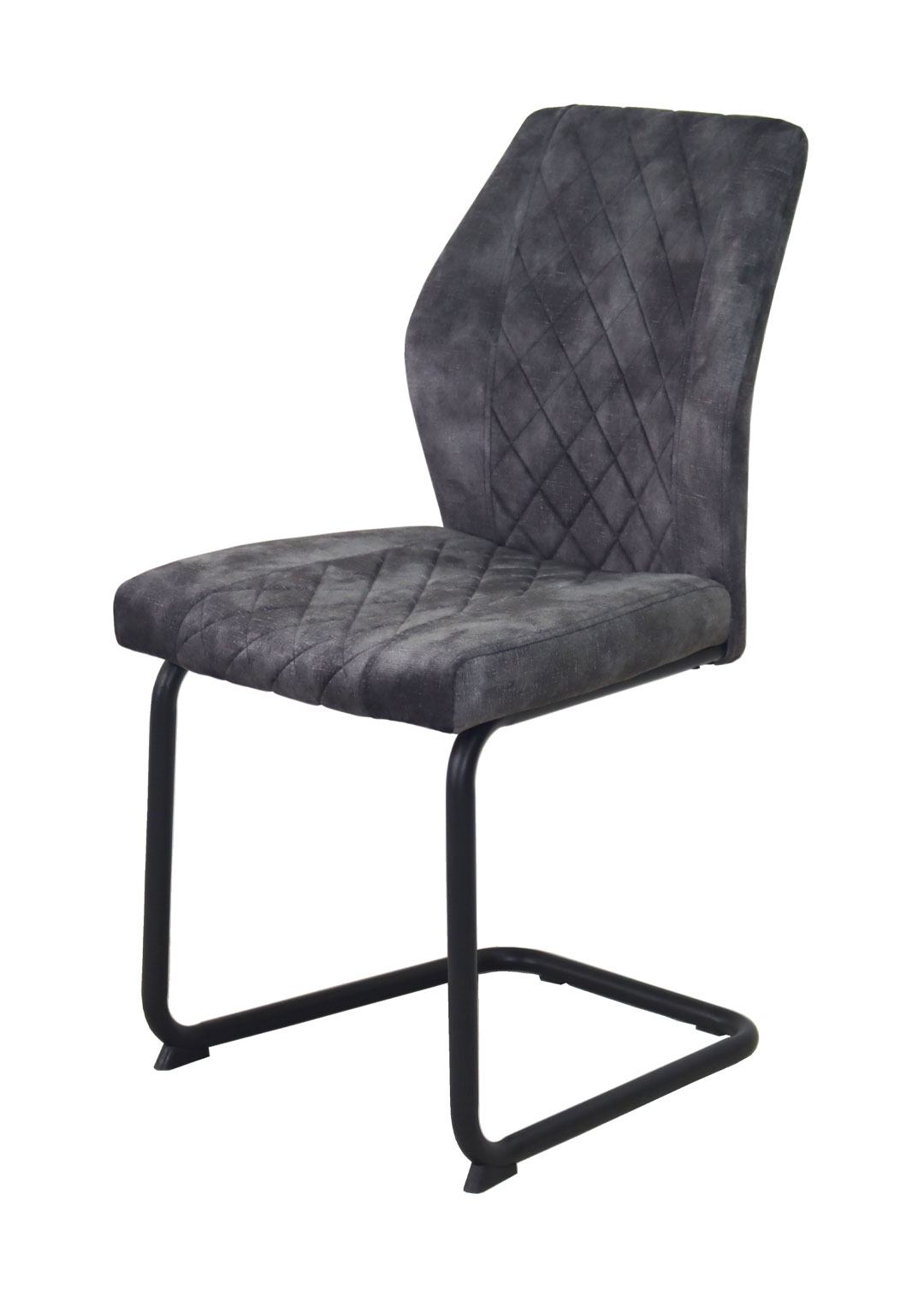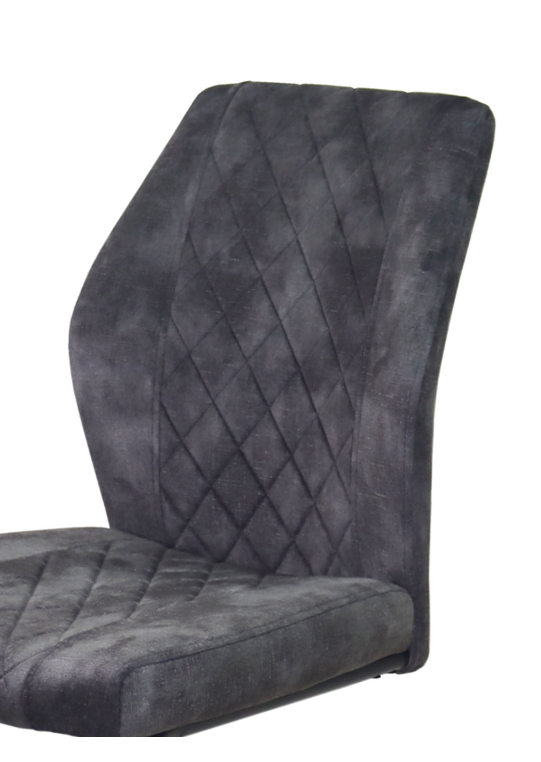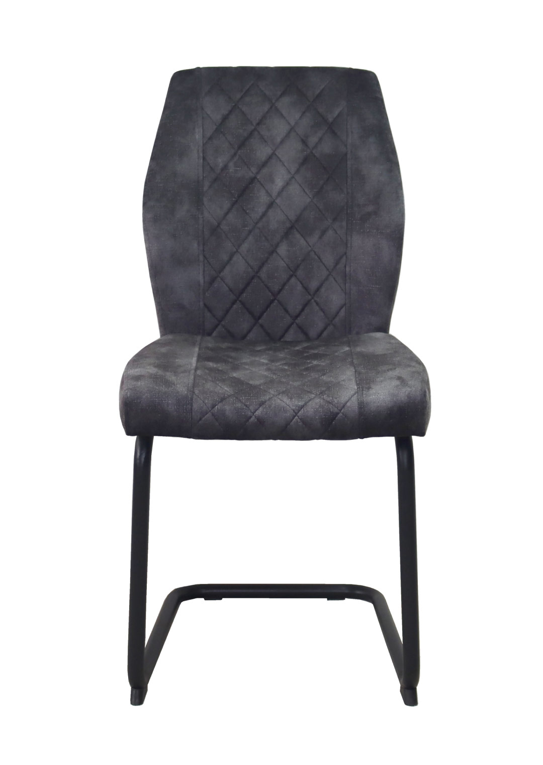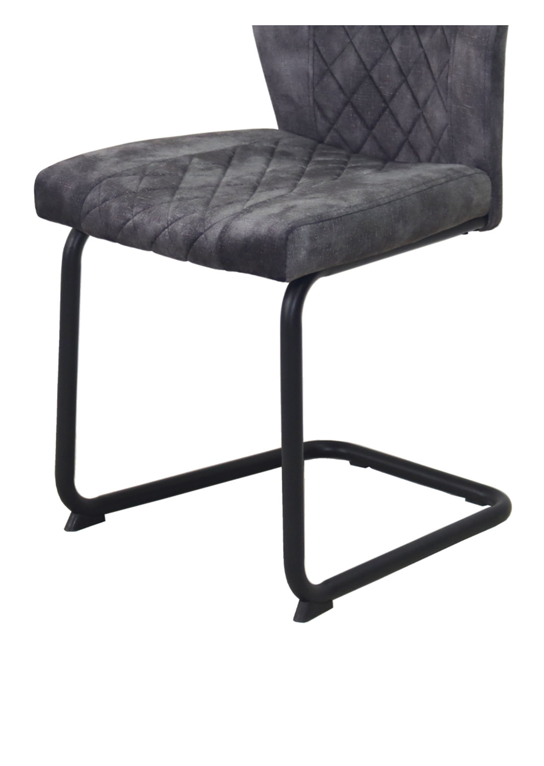 Der Schwingstuhl OLDE überzeugt in edlem Anthrazit mit einem stilvollen Auftritt an jedem Esstisch. Sein Bezug aus Microfaser-Samtvelour fühlt sich angenehm weich und anschmiegsam auf der Haut an und zeichnet sich durch eine leicht glänzende Oberfläche aus. Die eingefasste Diamant-Steppung auf Rücken und Sitzfläche unterstreicht die elegante, fast luxuriöse Optik des Schwingstuhls. Die nötige Standsicherheit garantiert ein Metallgestell mit strukturierter schwarzer Pulverbeschichtung, welches gleichzeitig Modernität und Leichtigkeit ausstrahlt.