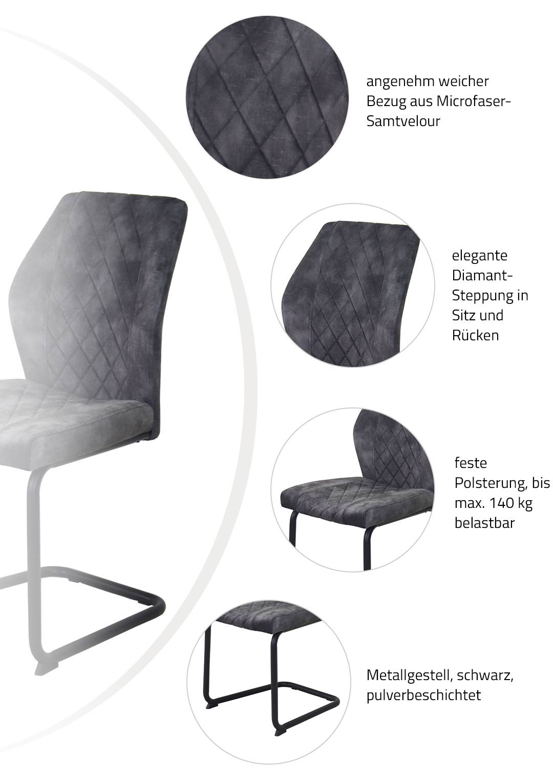 Schwingstuhl für Esszimmer anthrazit Microfaser Samtvelour - OLDE