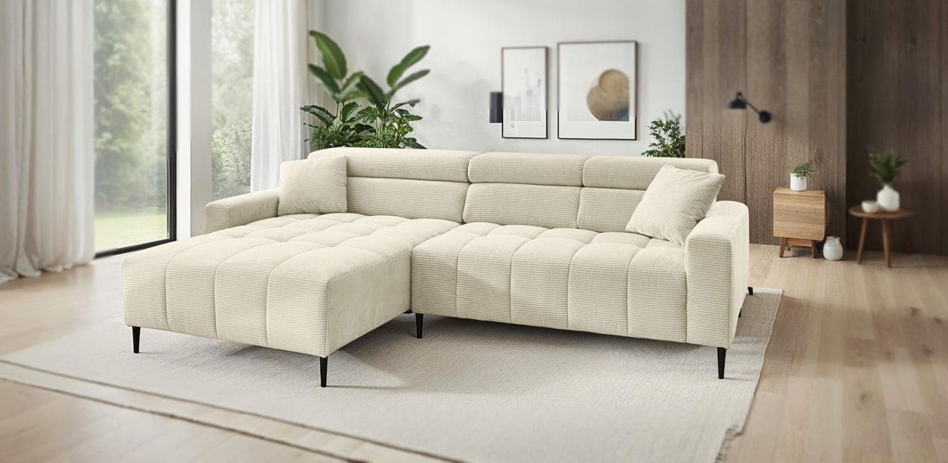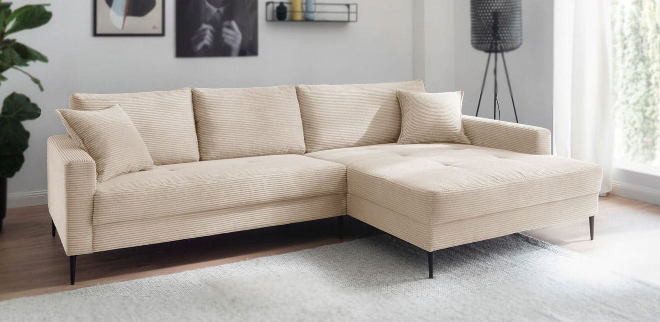 Ein Ecksofa aus Cord ist die perfekte Wahl für alle, die Komfort und Design in einem Möbelstück vereinen möchten. Der weiche, strukturierte Stoff verleiht dem Raum eine gemütliche Atmosphäre und liegt aktuell voll im Trend. Cord punktet nicht nur durch seine angenehme Haptik, sondern auch durch seine Robustheit und Langlebigkeit – ideal für den täglichen Gebrauch in Wohnzimmern, Familienhaushalten oder Jugendzimmern.