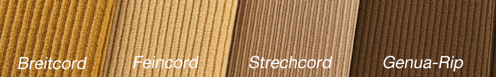 Cord ist nicht gleich Cord. Es gibt verschiedene Varianten, die sich in ihrer Struktur und Optik unterscheiden. Die bekanntesten sind Breitcord und Feincord.