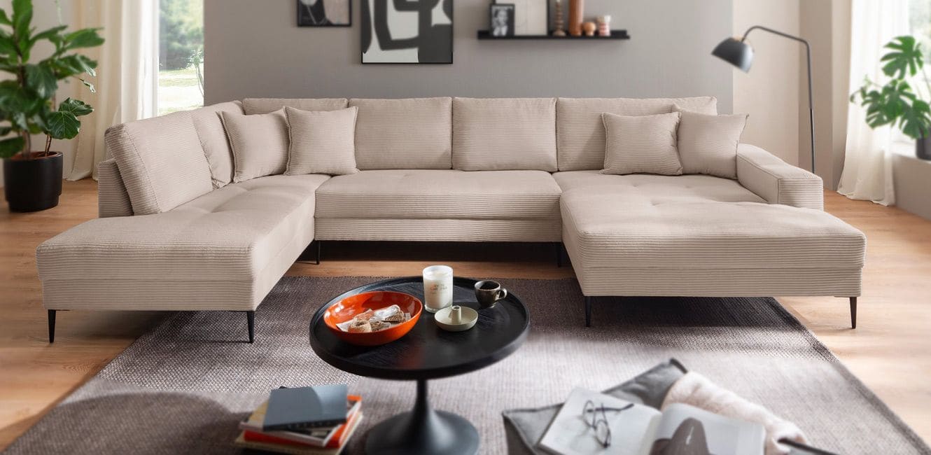 Dank ihrer Größe bietet eine Wohnlandschaft ausreichend Platz für Familie und Gäste. Ob zum Entspannen, Lesen oder Fernsehen – Cordsofas laden zum Verweilen ein. Besonders beliebt sind Modelle mit U-Form, die viel Sitzfläche bieten und den Raum optimal ausnutzen. Viele Varianten verfügen zudem über praktische Extras wie Schlaffunktion, verstellbare Kopfstützen oder integrierten Stauraum.